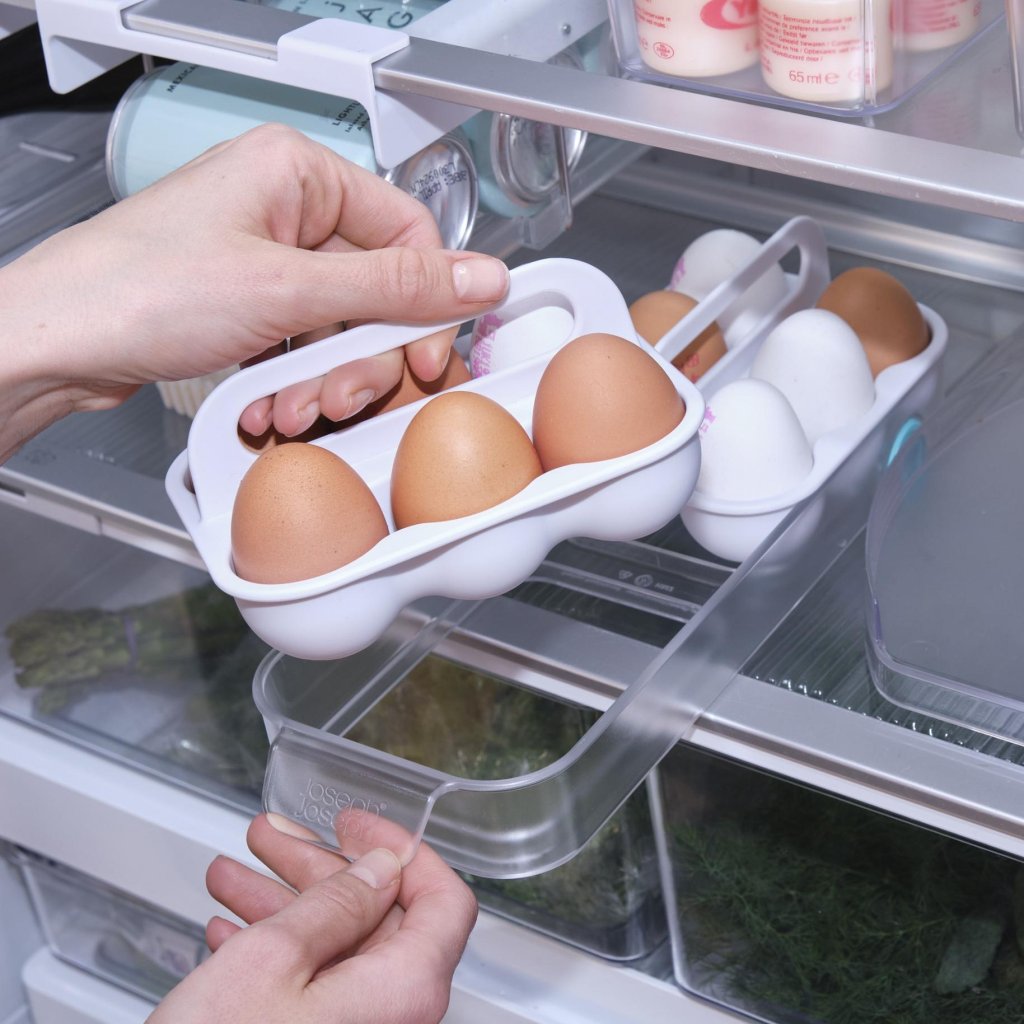 - Der Joseph Joseph FRIDGESTORE Eier-Organizer ist eine praktische Ergänzung für den Kühlschrank, die eine übersichtliche Aufbewahrung von Eiern und deren bequeme Entnahme beim täglichen Kochen ermöglicht.