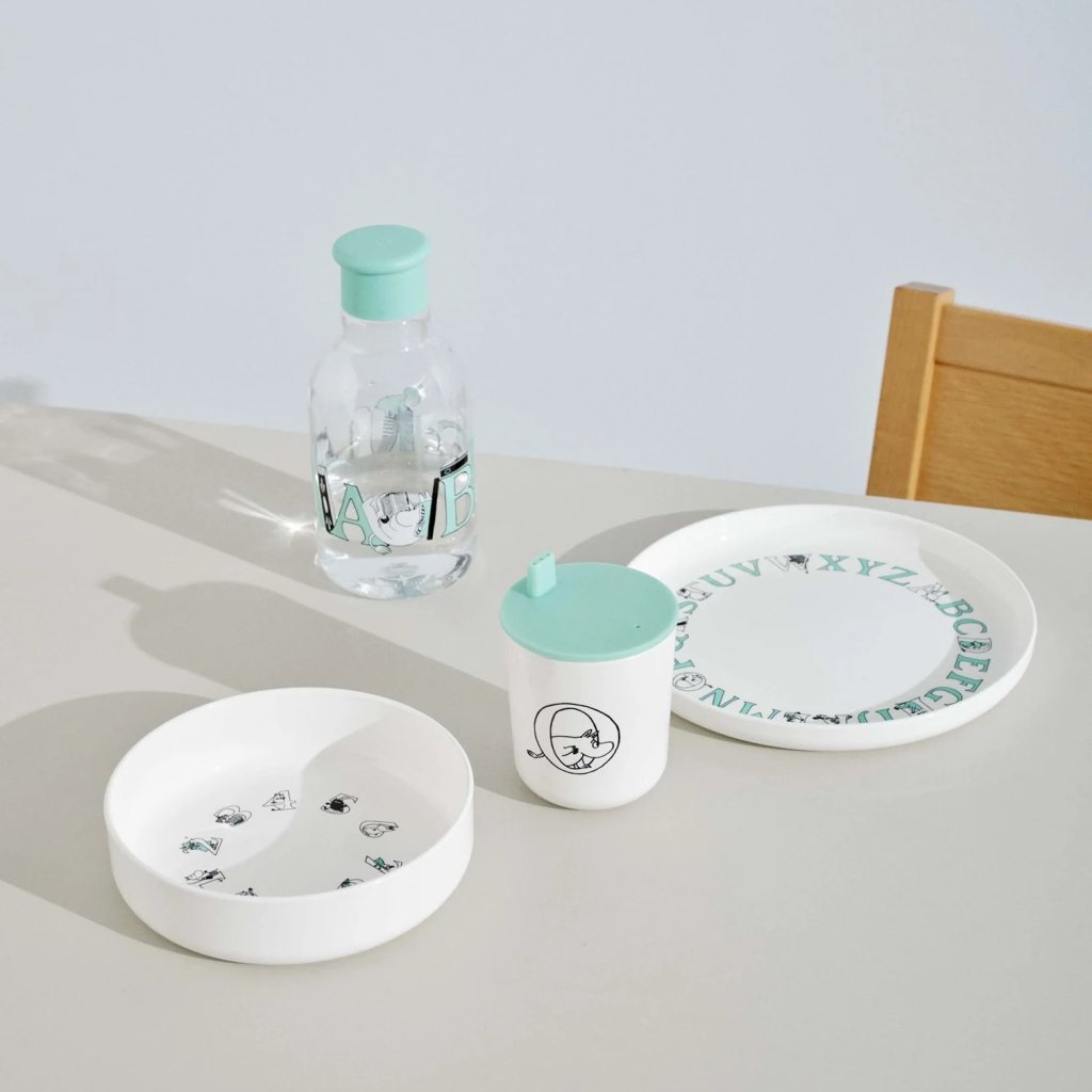 - der Rand des Tellers ist mit einem kompletten Alphabet verziert, das von den Illustrationen von Tove Jansson inspiriert ist und jedes Kind in seinen Bann zieht