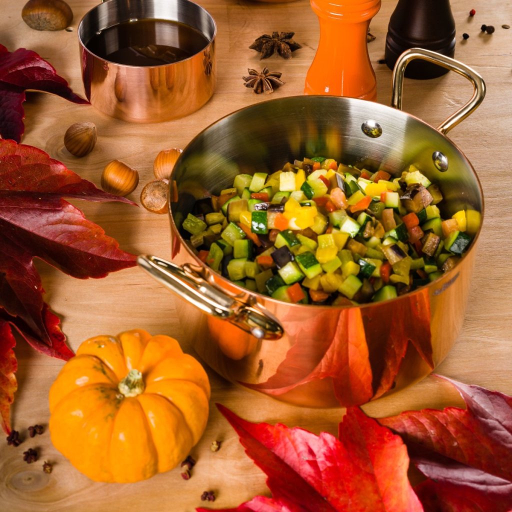 - Luxuriöses Kupfer-Kochgeschirr mit Edelstahl-Innenleben