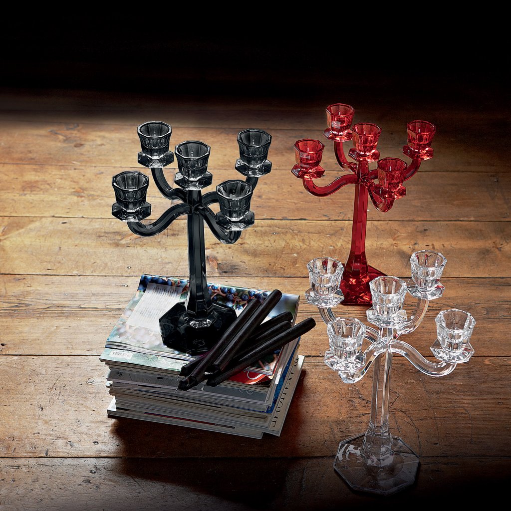 Der Kerzenständer Ravello in schwarzem Kristall, der 5 klassische Kerzen fasst, schafft eine verführerische Atmosphäre wie in einem mittelalterlichen Roman in einem modernen Interieur und in einem klassischen Raum mit dem Geist der Vergangenheit.
