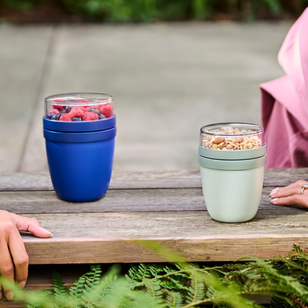 - der oben transparente 200-ml-Behälter ist ideal für Müsli, Obst oder knusprige Croutons, ohne dass die Gefahr besteht, dass sie nass werden