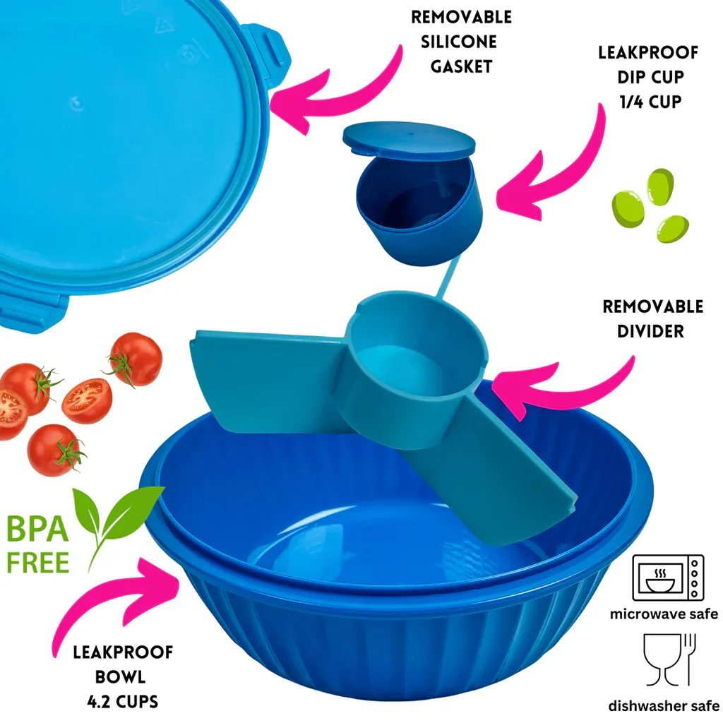 • dank der herausnehmbaren Trennwand können Sie die Zutaten getrennt halten, bis Sie sie mischen müssen