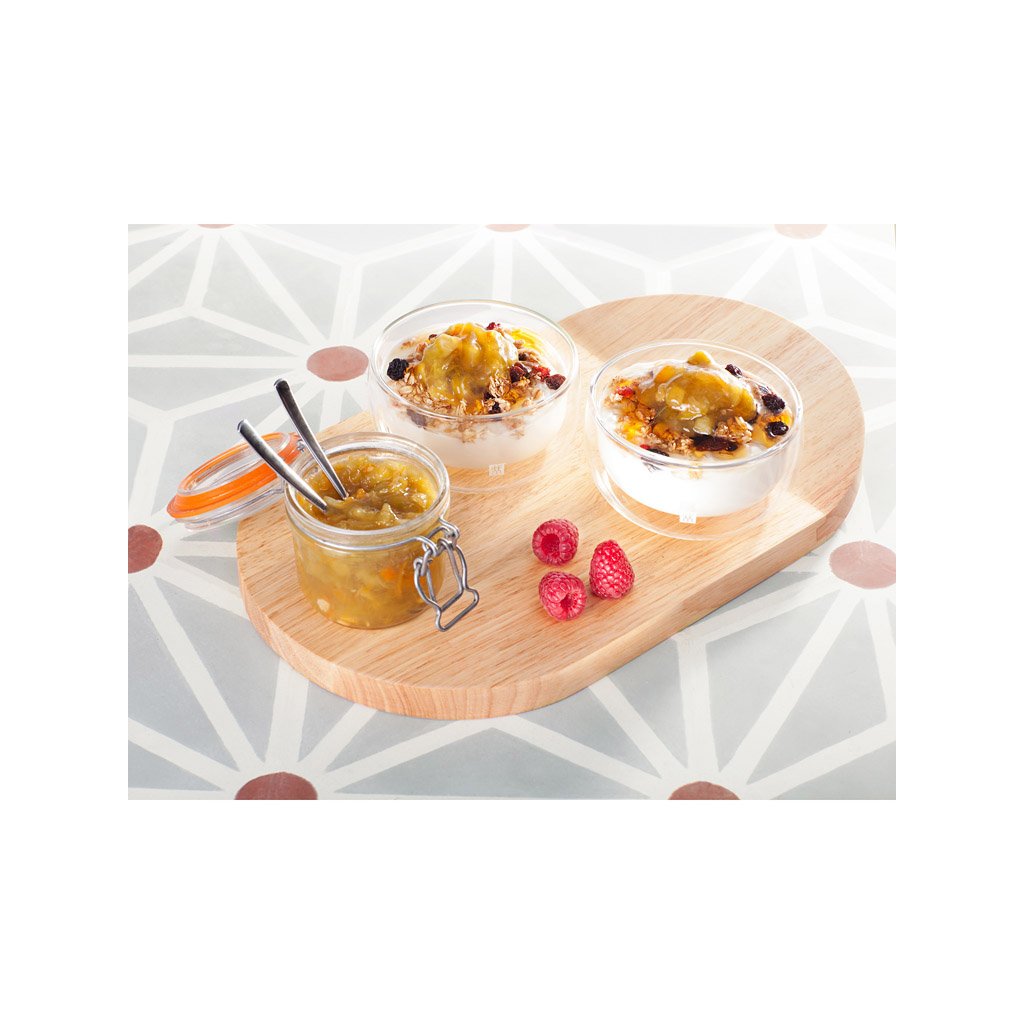 Die Schalen fallen durch ihr auffälliges Design ins Auge. Die Wirkung einer kleinen Schale in einer größeren ist sowohl verspielt als auch elegant. Der Inhalt, mit dem Sie die Schale füllen, wird immer "luftig" wirken. Desserts und Vorspeisen werden im Handumdrehen zum Mittelpunkt Ihres Tisches.