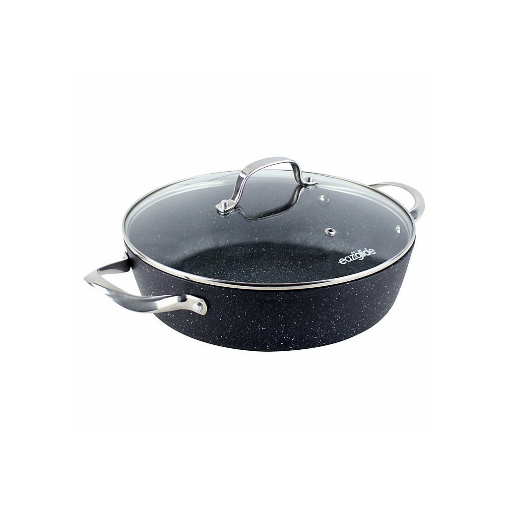 Neverstick2 Kochgeschirr repräsentiert die neueste Technologie und revolutionäre Innovationen im Bereich des antihaftbeschichteten Kochgeschirrs. Eaziglide Neverstick2, aus gehärtetem Aluminium wurde speziell entwickelt, um Ihnen das Leben zu erleichtern. die exklusive Neverstick2-Oberfläche hält viel länger als andere Oberflächen, verwendet eine 7x stärkere Technologie und ermöglicht Ihnen gesundes Kochen ohne Öl oder andere Fette.