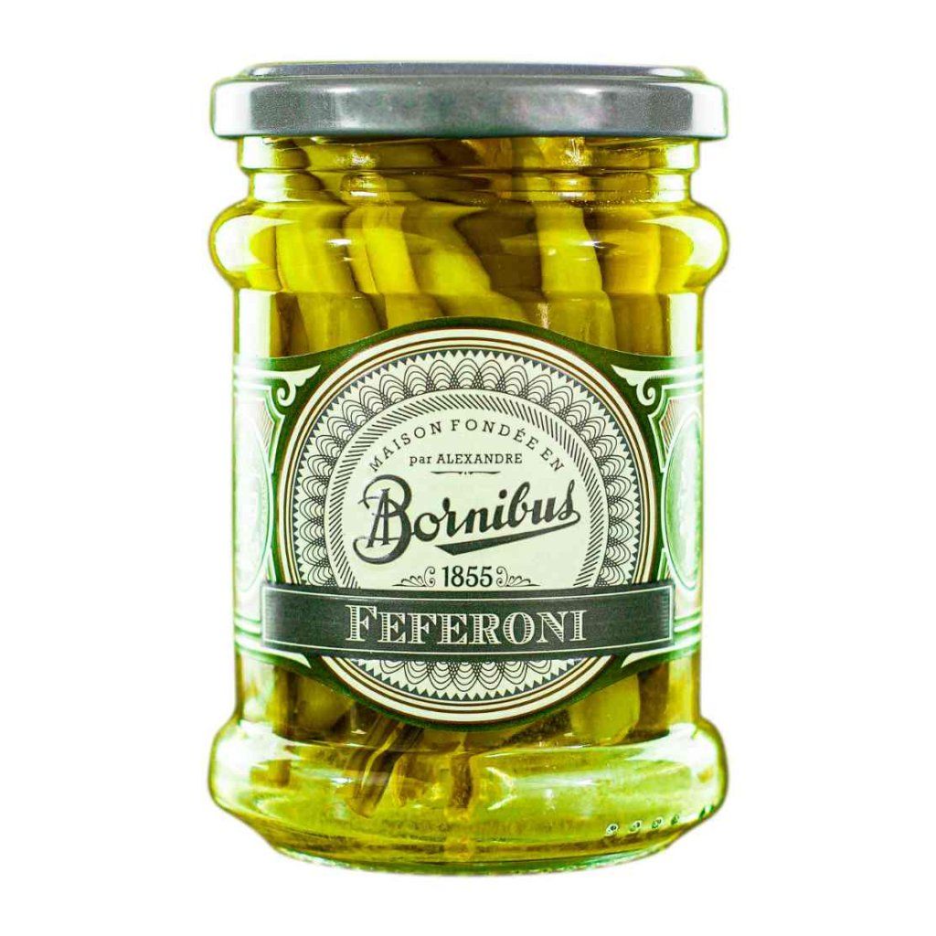 - Bornibus Peperoni sind kleine eingelegte Paprikaschoten mit einem ausgeprägten würzigen Geschmack, ideal zum Verfeinern von Aperitifs, Sandwiches oder verschiedenen kalten Gerichten.