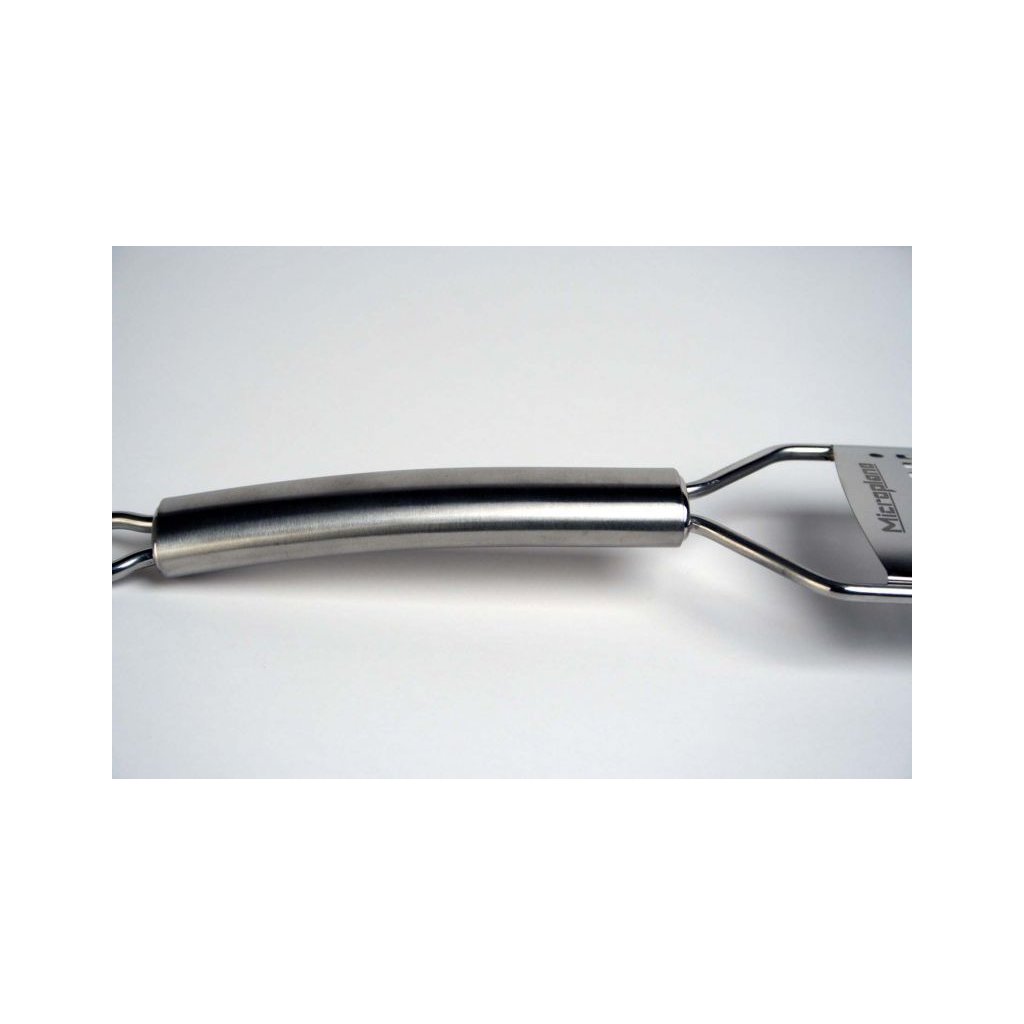 - Der ergonomische Griff ist wie die gesamte Reibe aus chirurgischem Edelstahl gefertigt