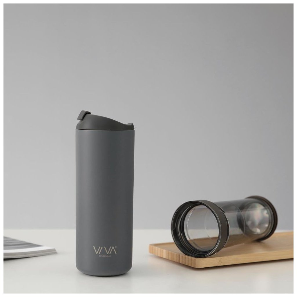 To Go Becher RECHARGE ANYTIME 460 ml, mit Teesieb, grau, Viva Scandinavia