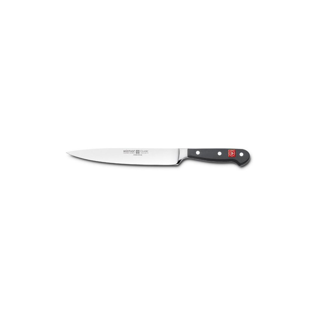 Die Classic Messerserie bringt die Besteckkunst der Marke WÜSTHOF perfekt zur Geltung. Sie ist die beliebteste Serie aus dem WÜSTHOF-Markensortiment, nicht nur wegen ihres hohen Nutzungskomforts. Es handelt sich um klassische Messer mit vernieteten Griffen, deren Klingen aus einem einzigen Stück aus legiertem rostfreiem Messerstahl X50CrMoV15 geschmiedet sind. Dank der Verwendung hochwertiger Materialien und des Präzisionsschliffs verfügt er über eine hohe und lang anhaltende Schärfe. Die hochfunktionellen Classic-Messer werden mit großer Sorgfalt bis ins kleinste Detail gefertigt. Genau wie von den Messern aus Solingen erwartet. Nach dem ersten Gebrauch werden Sie kein anderes Messer mehr haben wollen..
