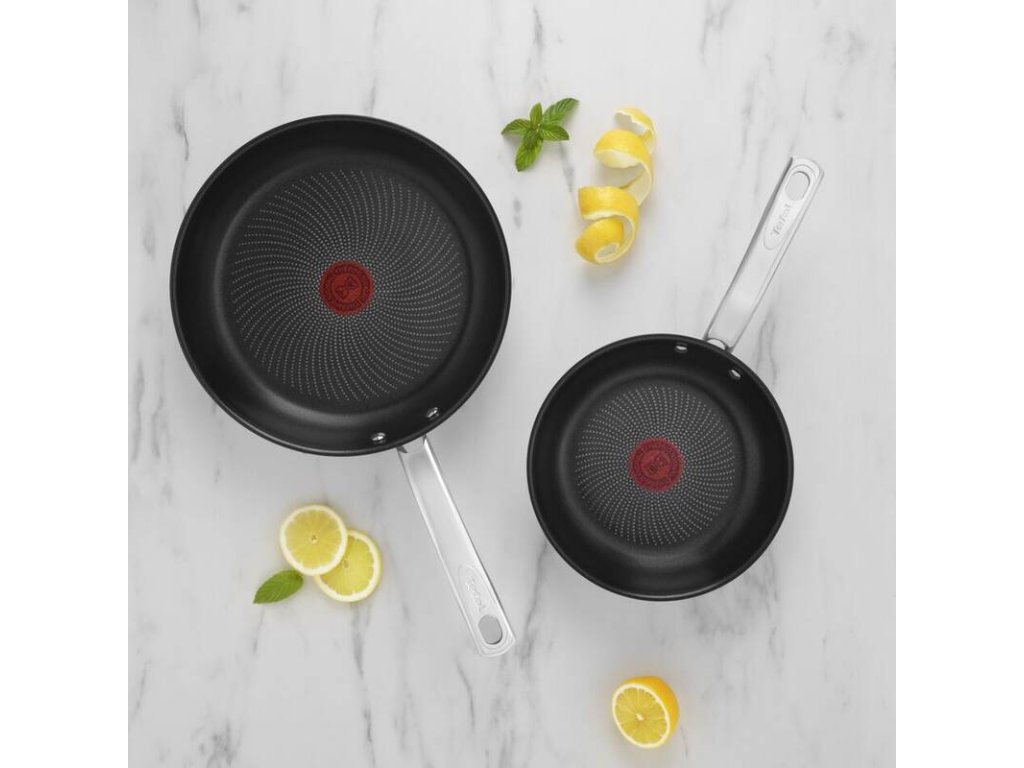 Pfannenset INTUITION enthält 2 Pfannen in verschiedenen Größen. Die Pfannen haben eine sehr haltbare und antihaftbeschichtete Titanium Oberfläche und jede ist mit der Thermo-Signal™Technologie ausgestattet, die die ideale Temperatur für den Start des Kochens überwacht, damit Ihre Mahlzeiten immer köstlich sind.