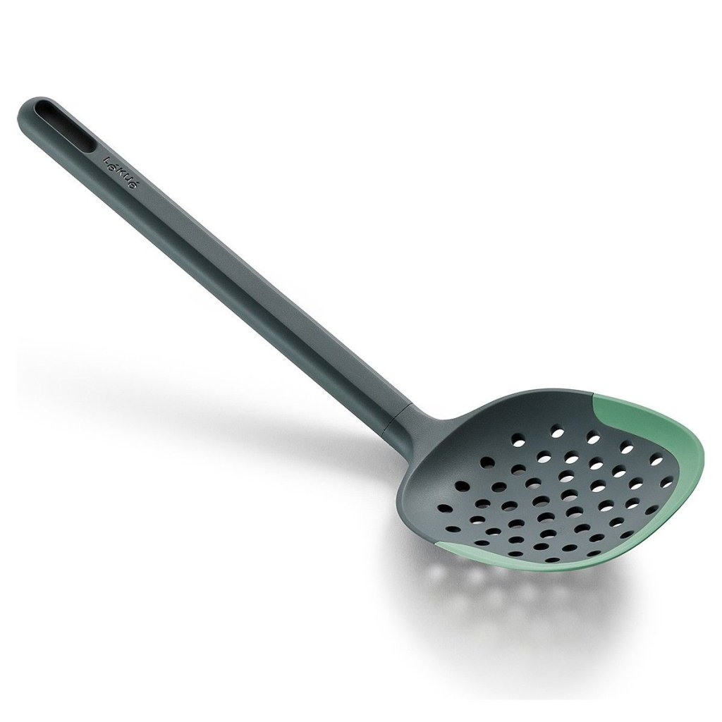 - Das perforierte Küchensieb Kelle Lékué NON-SCRATCH eignet sich ideal zum Abseihen, Servieren oder Entfernen von Schaum aus Brühen und Suppen.