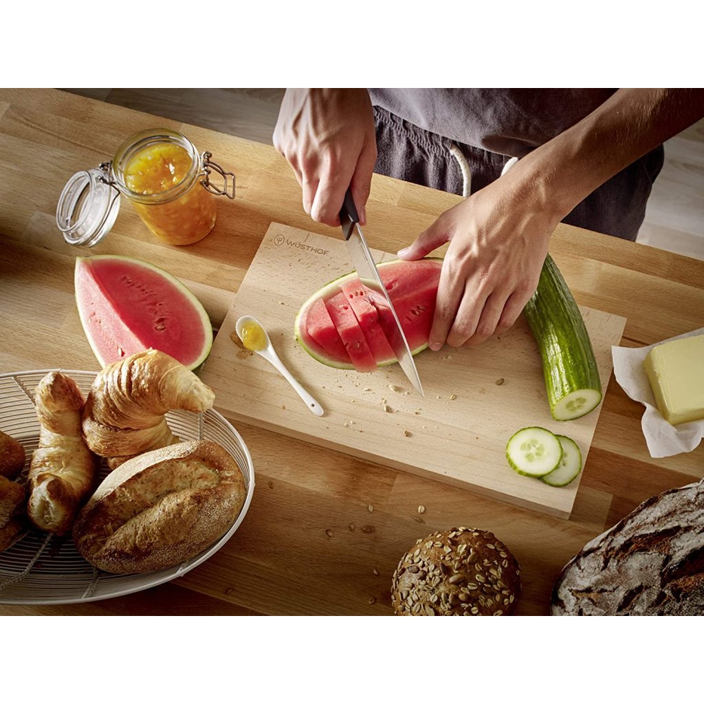 WÜSTHOF je německá rodinná firma, která již po sedm generací vyrábí s nadstandartní péčí nože proslulé po celém světě. Jejich čepele jsou kovány ze špičkové, nerezové, nožířské oceli. Nože WÜSTHOF vynikají skvělými užitnými vlastnostmi a zaujmou kvalitním zpracováním. Vysoký komfort při jejich použití je dán ergonomicky tvarovanými rukojeťmi a perfektním slícováním jednotlivých částí, které zabraňuje zachycování nečistot. Produkty této značky tak splňují i náročné hygienické normy. Tajemství perfektní ostrosti a dlouhé životnosti nožů WÜSTHOF spočívá ve speciálním procesu broušení řízeném a kontrolovaném počítačem. I to je jeden z důvodů, proč jsou dnes oblíbeny profesionálními šéfkuchaři i nadšenými amatéry ve více než 80 zemích.