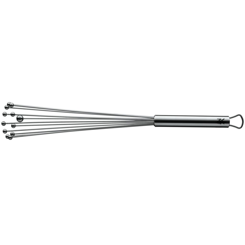 Der 32 cm lange Profi Plus Schneebesen ist ein Neuzugang im Schneebesen-Sortiment. Die vielen schwingenden Kugeln bringen viel Luft in die gerührte Masse, garantiert ohne "Klumpen". Dank der Eigenschwingung der Kugeln auf den Drähten ist die Suppe im Handumdrehen umgerührt und die Sahne in Sekundenschnelle abgewischt.Die Drähte reichen bis an den unteren Rand des Topfes oder der Schüssel, und dank des großen Greifbereichs bleibt nichts am Boden liegen. Zwischen den Drähten bleibt nichts "hängen", so dass der Besen leicht und schnell zu reinigen ist und die Hygiene gewährleistet ist.