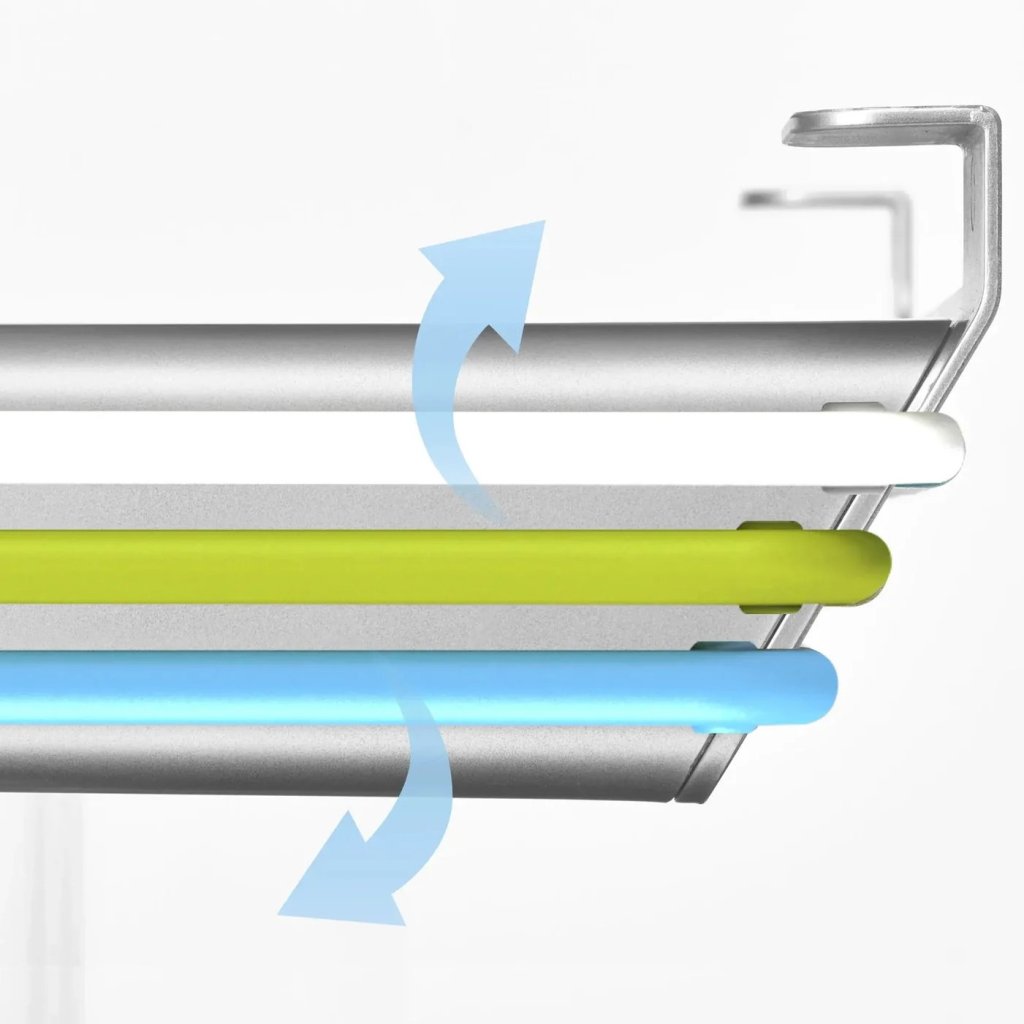 - innovatives Set von 3 doppelseitigen Brettern in einer eleganten Halterung zum Aufhängen unter dem Regal