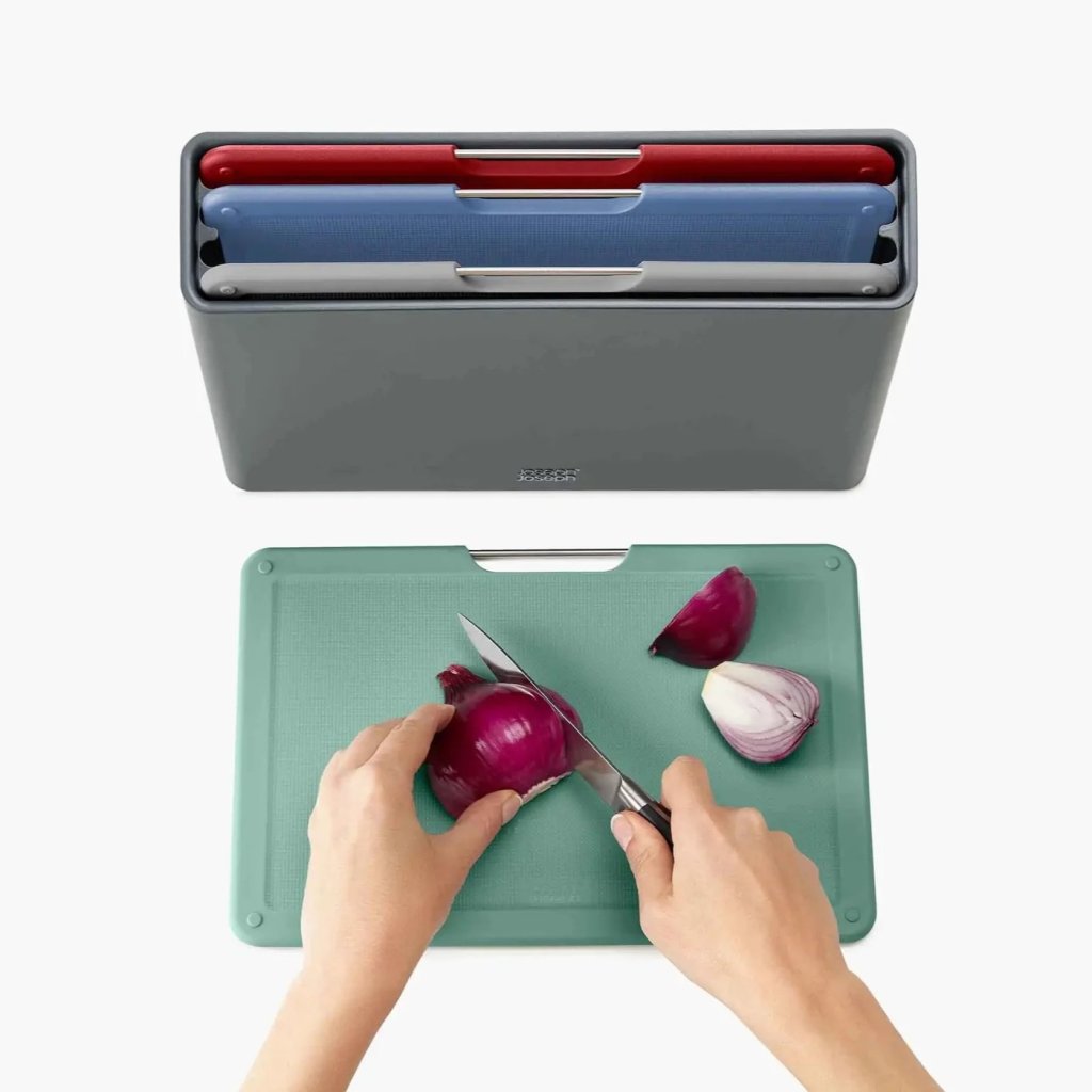 Schneidebrett FOLIO 98995 30 x 20 cm, 4er-Set + Küchenmesser, Kunststoff, Joseph Joseph