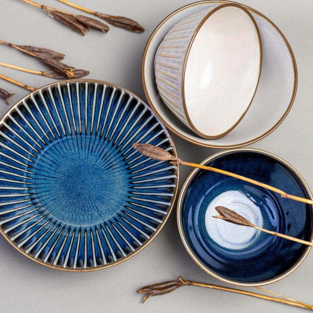 - Die Kombination aus dunkelblauer Glasur und helleren Tönen in den Strukturen wirkt wie sanfte Farbverläufe, die jedem Stück einen einzigartigen Charakter verleihen.