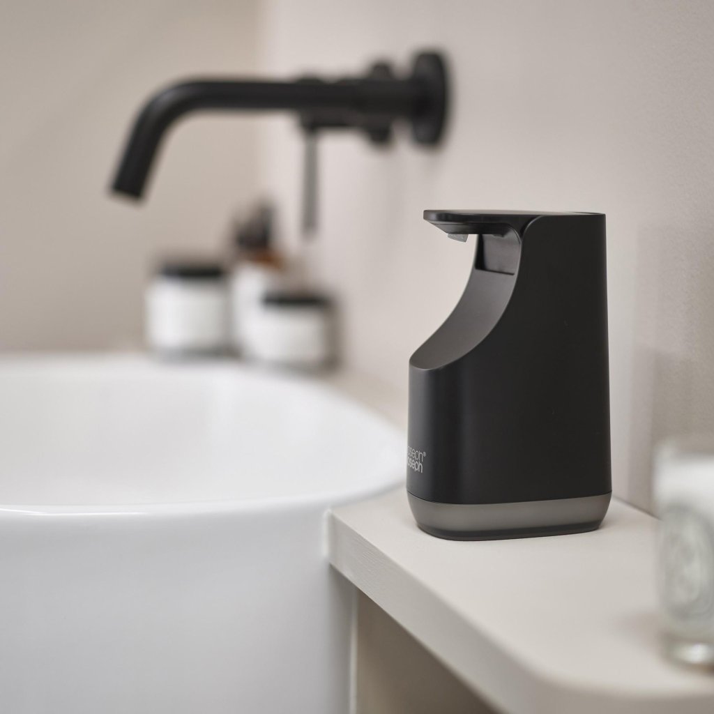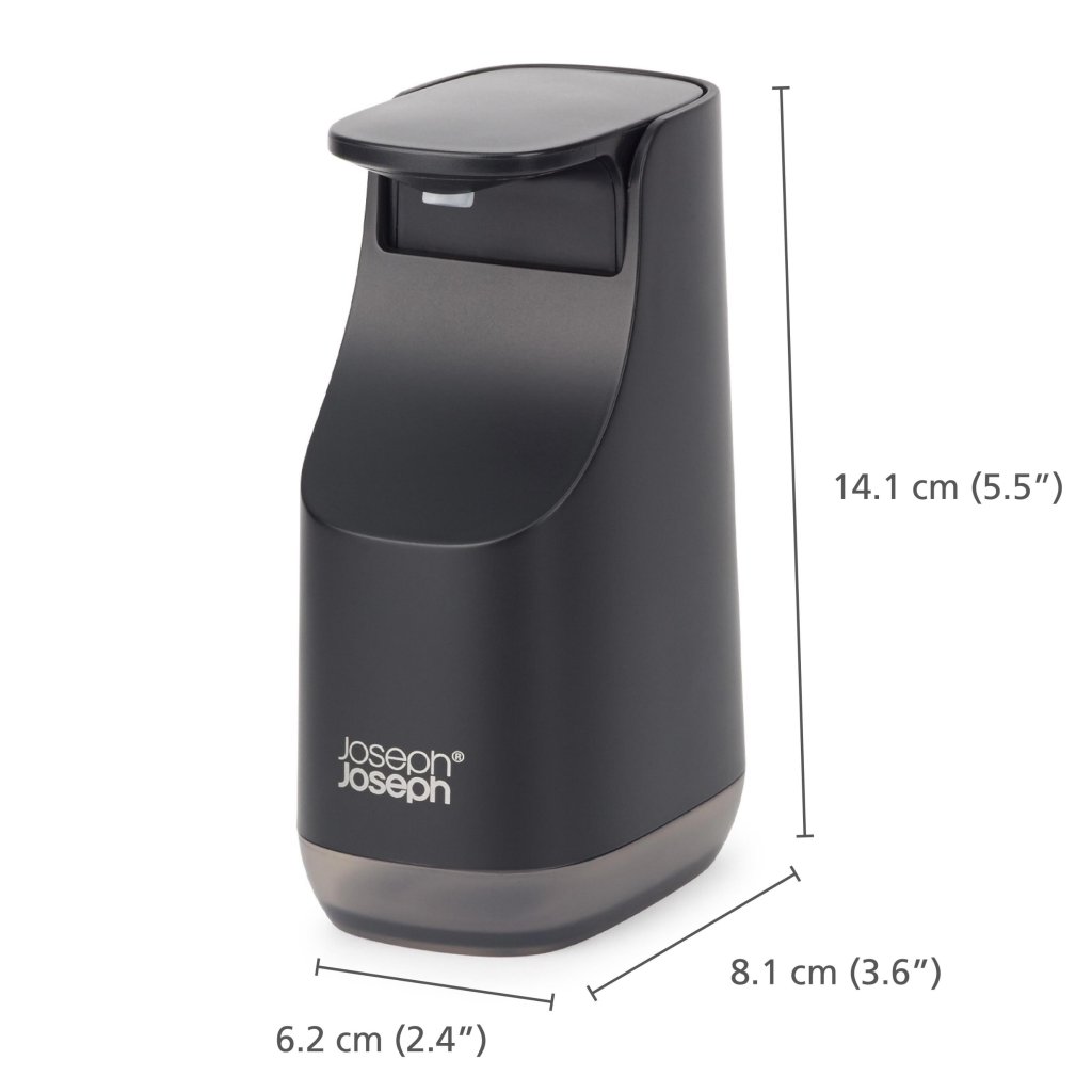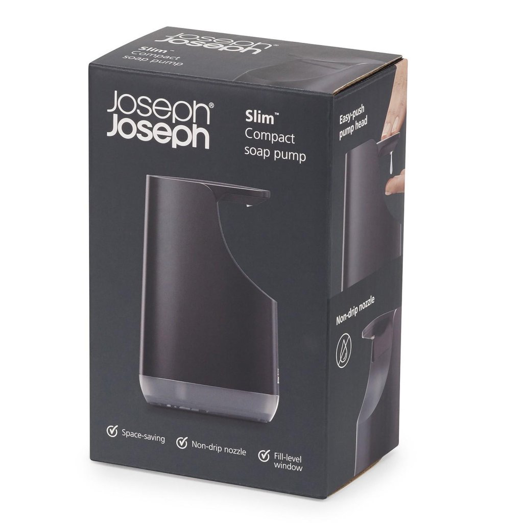 - Der Joseph Joseph SLIM Seifenspender in Schwarz ist eine elegante und platzsparende Lösung für die tägliche Hygiene am Küchen- und Spülbecken.