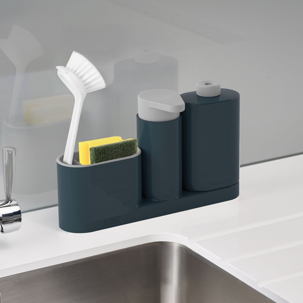 Spülbecken-Reinigungs-Set SINKBASE PLUS mit Spülmittelspender, grau, Joseph Joseph