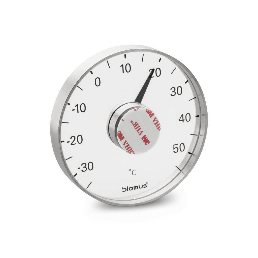 Das selbstklebende Fensterthermometer GRADO von Blomus ist aus langlebigem Edelstahl und bruchsicherem Acrylglas gefertigt. Dank der verwendeten Materialien kann es problemlos der Witterung standhalten. Er lässt sich einfach an das Fenster kleben, und Sie können die Außentemperatur überwachen, ohne das Fenster zu öffnen.