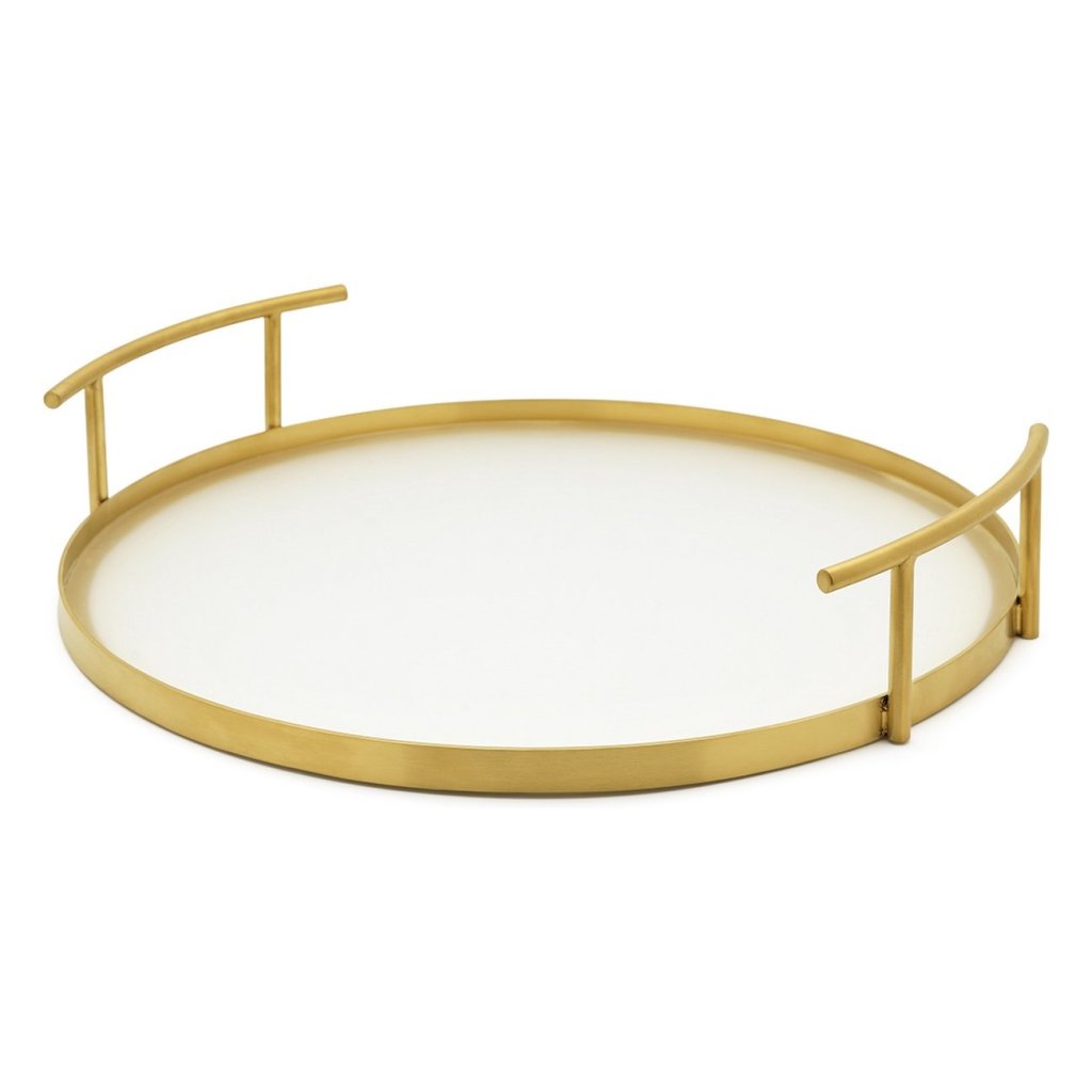 Serviertablett AINTO 37 cm, gold, glas / edelstahl, Leopold Vienna