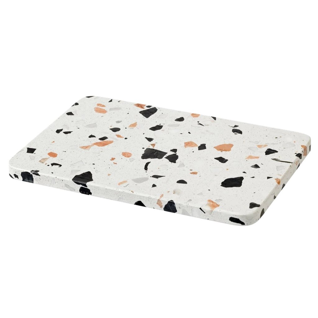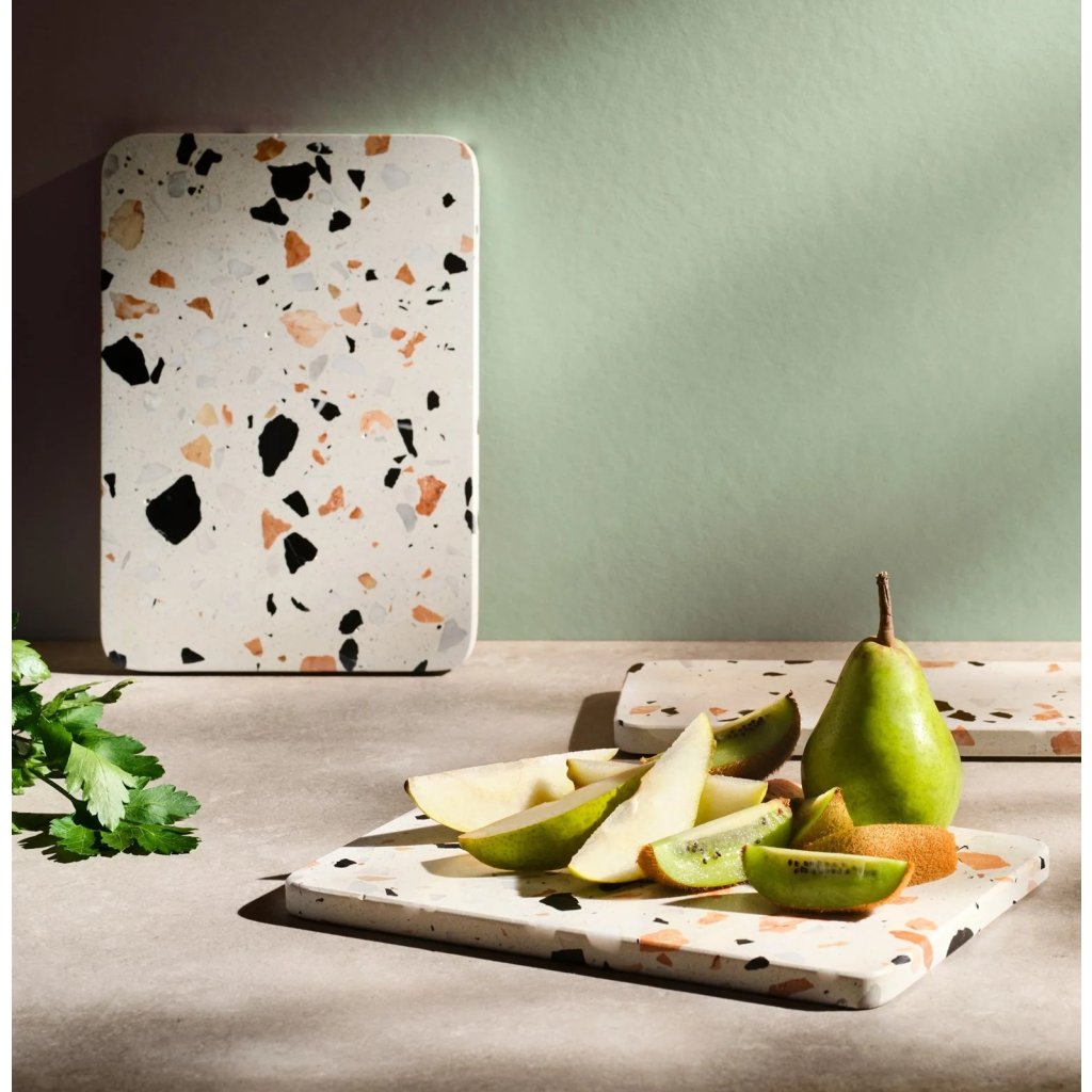 - aus Terrazzo-Material, das jedem Stück dank der farbigen Details ein einzigartiges und lebendiges Aussehen verleiht