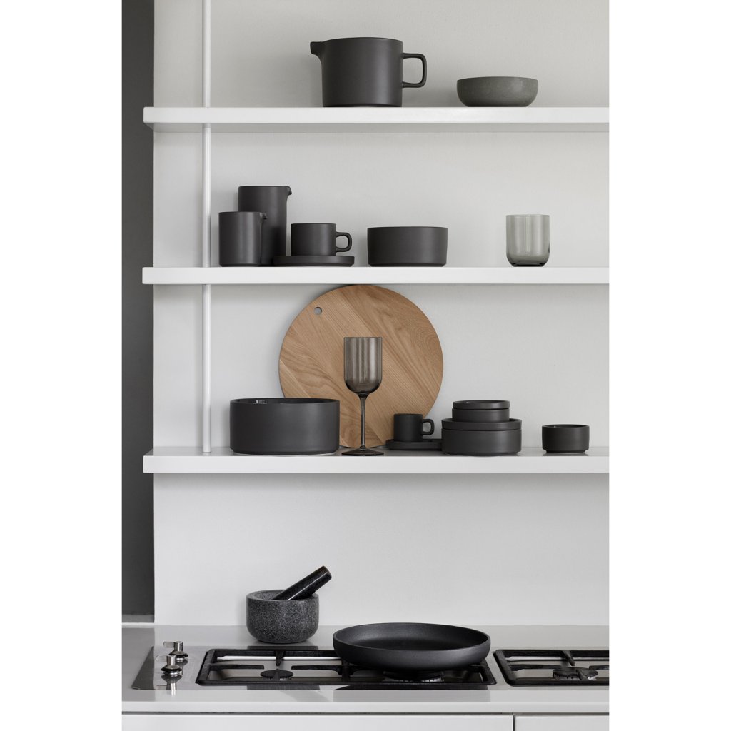 Kaffeetasse mit Untertasse PILAR, 2er-Set, 200 ml, dunkelgrau, Keramik, Blomus
