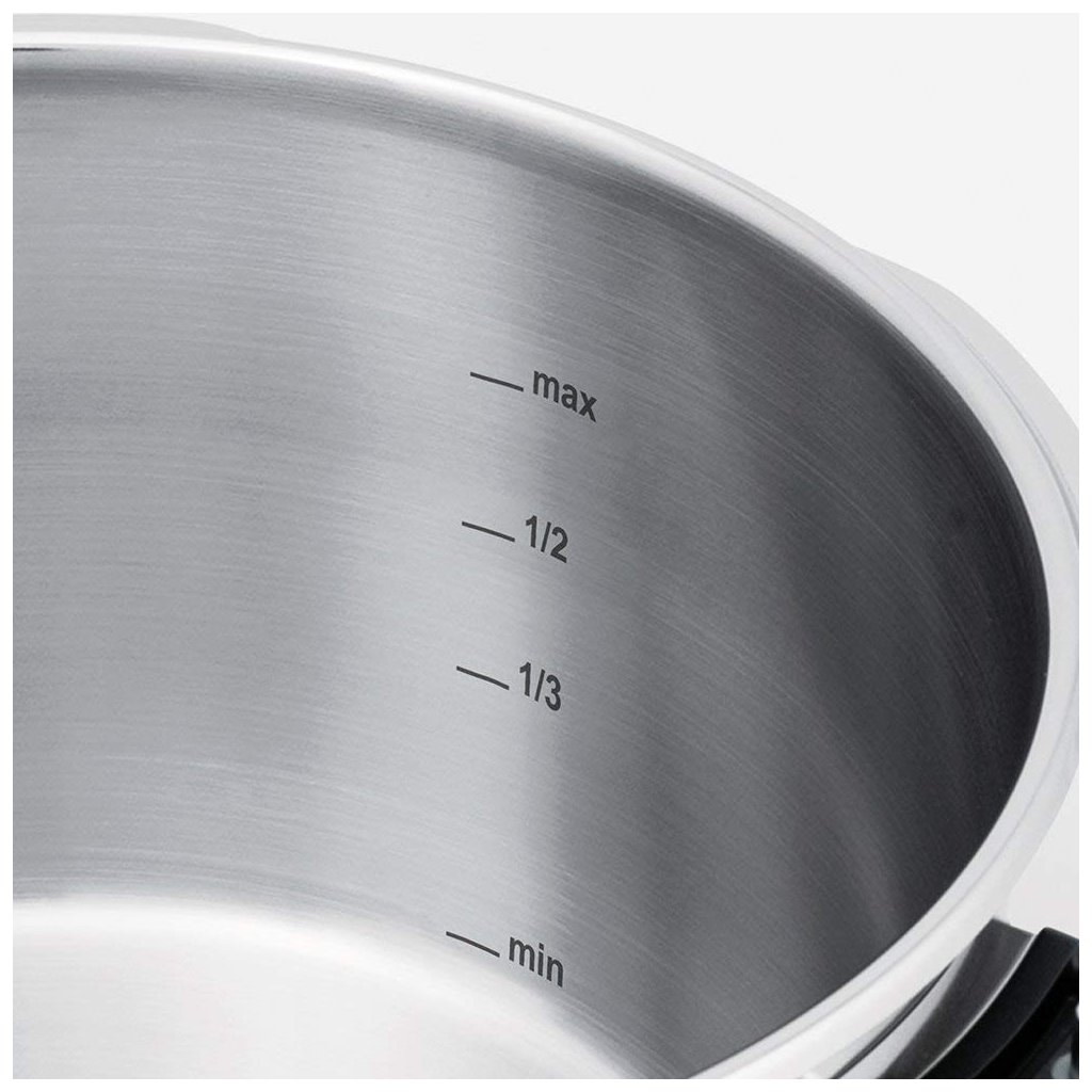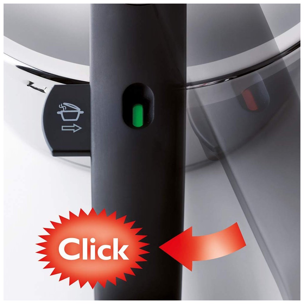 - mechanische Druckanzeige für sicheres Öffnen, die je nach Druck im Topf farblich gekennzeichnet ist