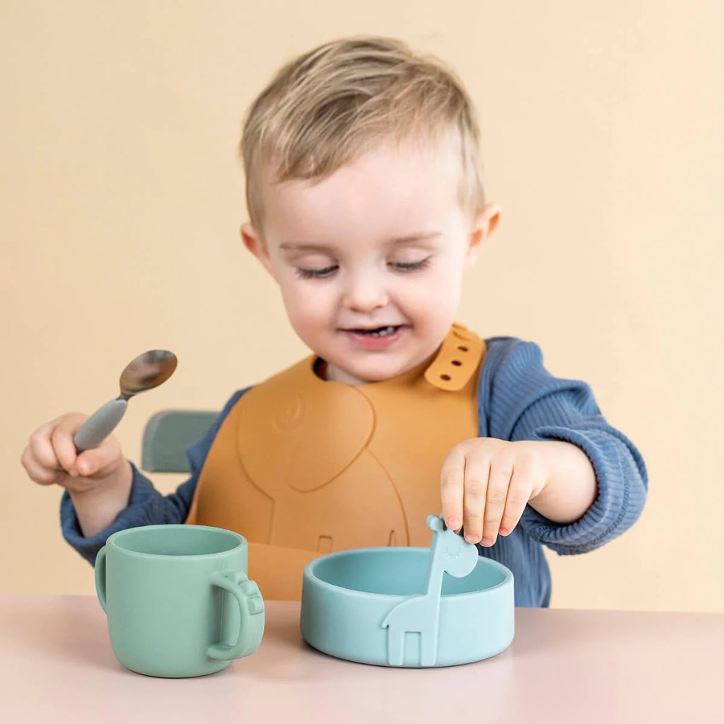 Kinderschale PEEKABOO RAFFI 275 ml, blau, Silikon, Done by Deer