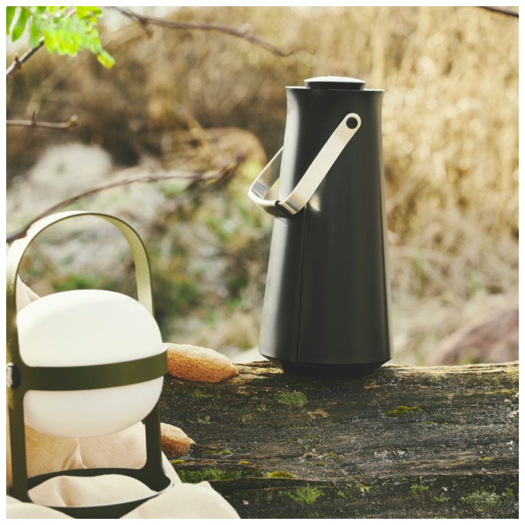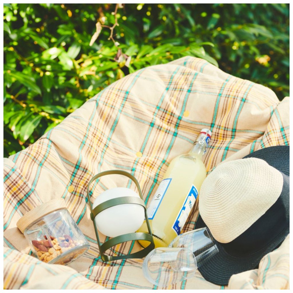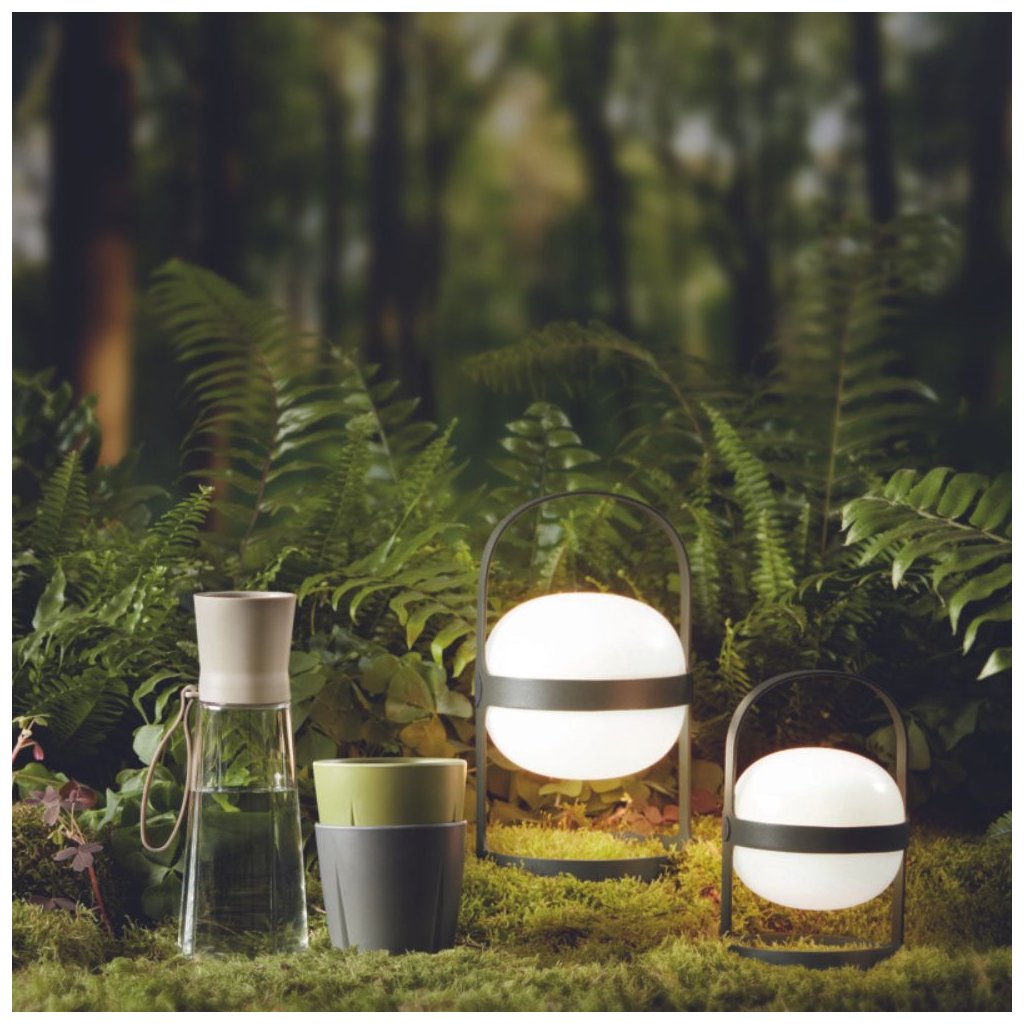 Die Lampe ist dank eines praktischen Griffs leicht zu tragen, kann sowohl drinnen als auch draußen verwendet werden und ihr Lampenschirm hat eine schöne, weiche, organische Form, die an Kieselsteine am Strand erinnert - ja, an diese glatten Steine, die man immer anfassen möchte!