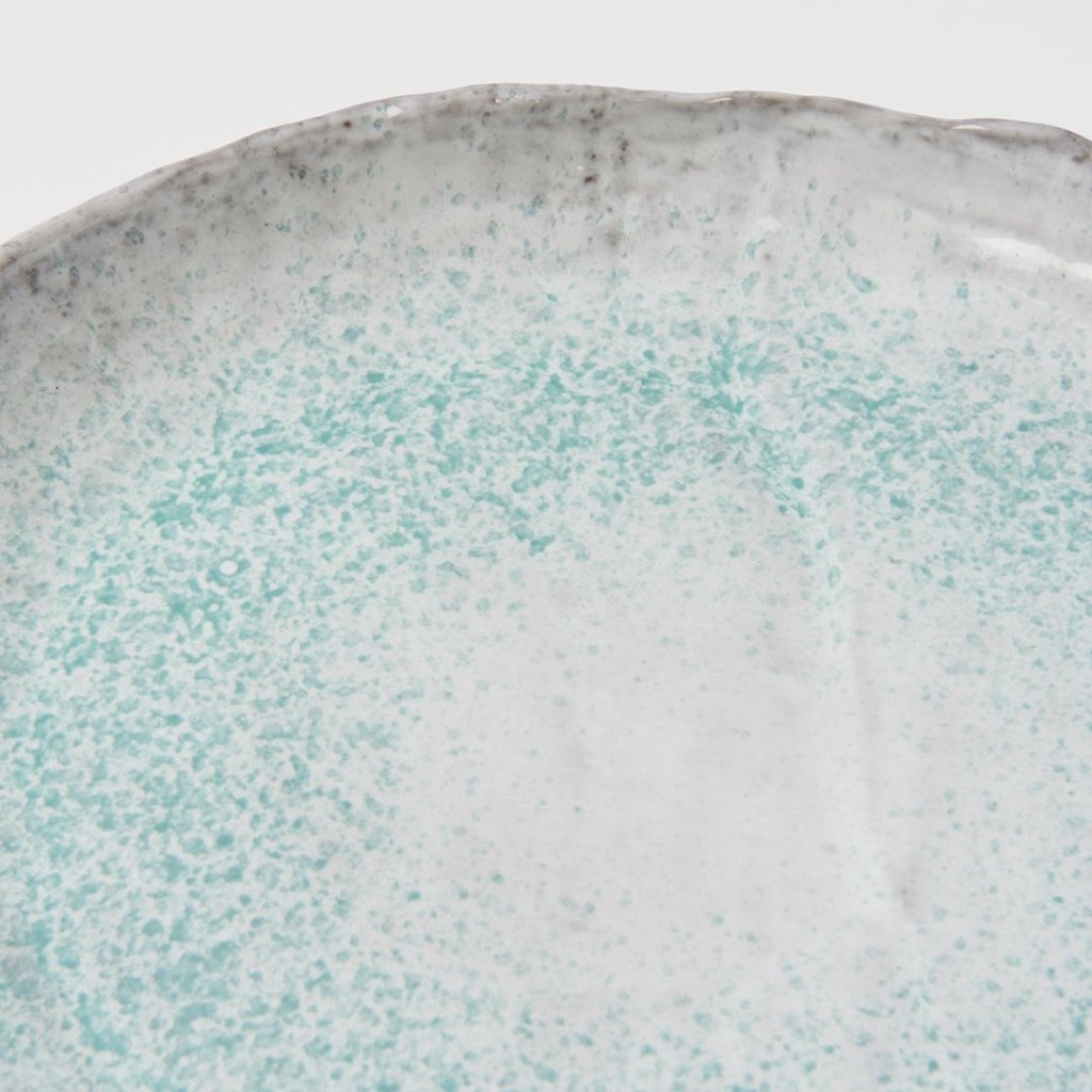 - Die blau-weiße Tüpfelung der Glasur sorgt für einen frischen, vom Meer und der Küstenatmosphäre inspirierten optischen Effekt.