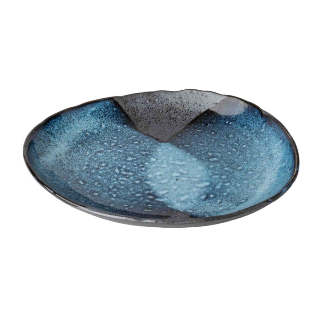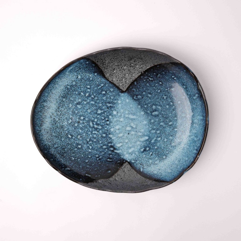 - Der 31 cm lange Teller STORM besticht durch eine markante Kombination aus blauer und schwarzer Glasur, die von der stürmischen See inspiriert ist und dem Servieren von Haupt- und Beilagen einen dynamischen und modernen Charakter verleiht.