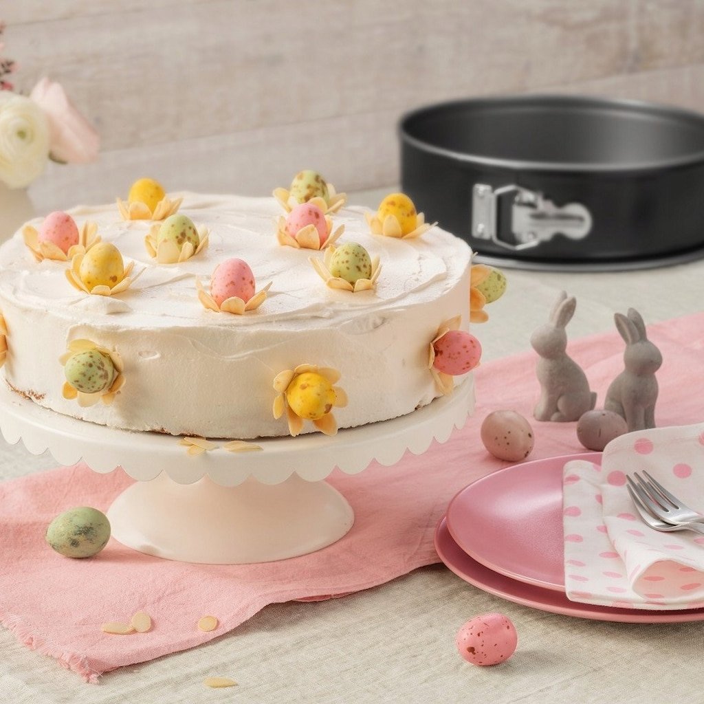 - ideal zum Backen und Servieren, da sich der gebackene Kuchen leicht lösen und direkt zum Verzieren vorbereiten lässt