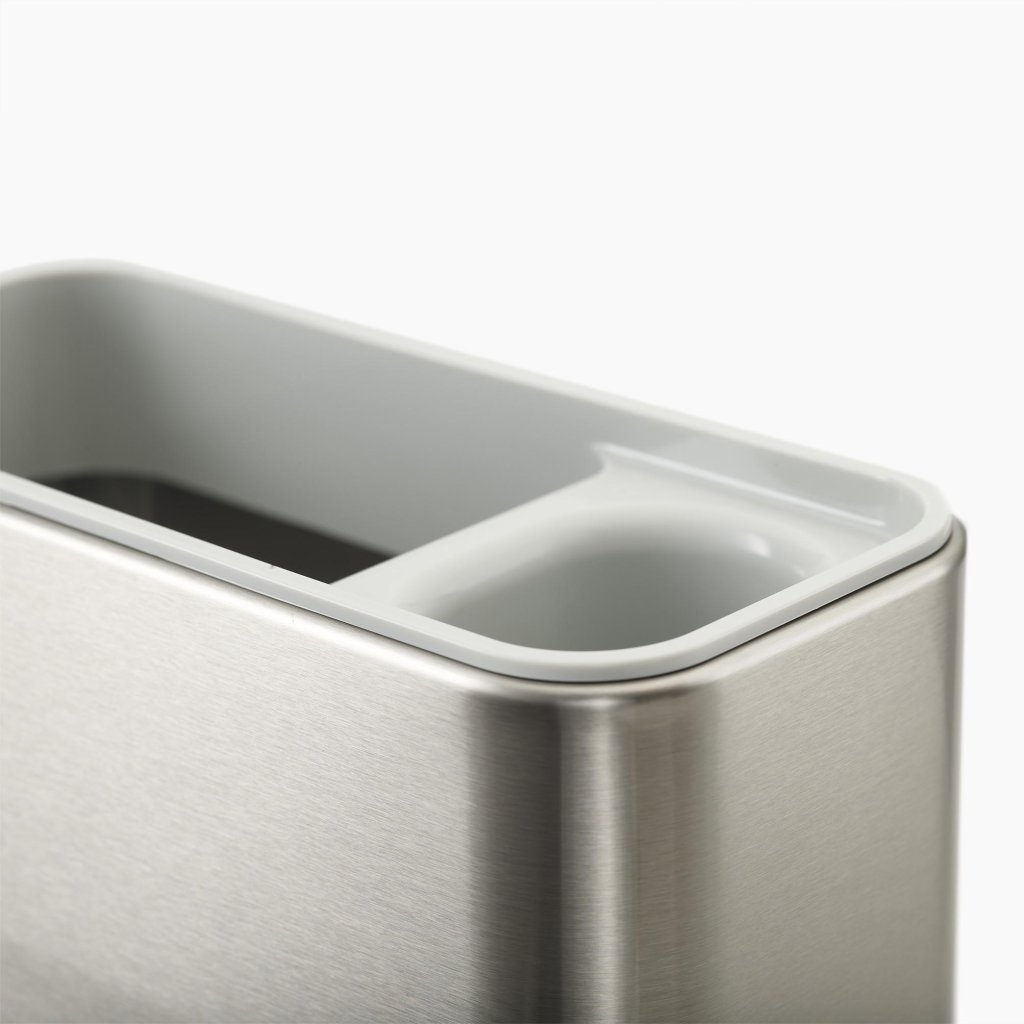 - Der SURFACE Spül-Organizer in elegantem Edelstahl-Design hilft, den Bereich um die Spüle perfekt übersichtlich und stilvoll zu organisieren.