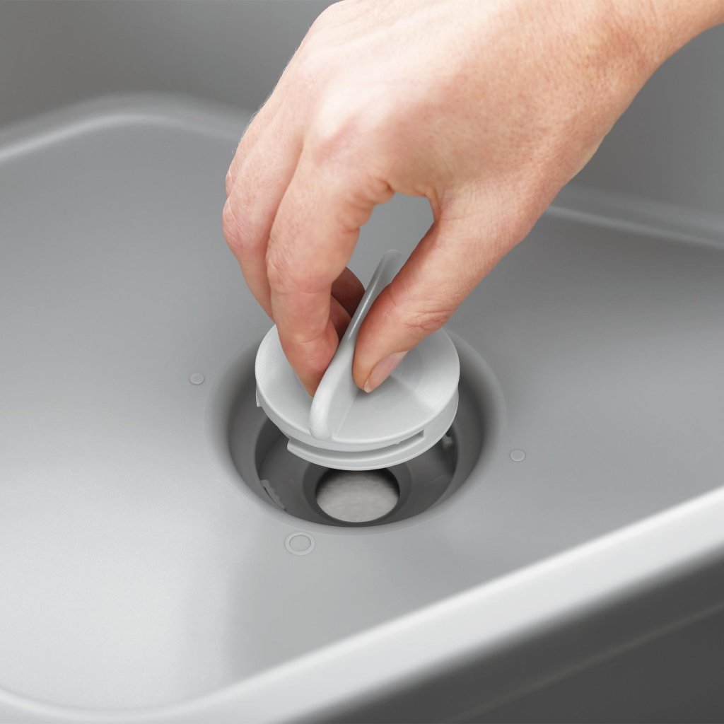 - Der integrierte, verschließbare Ablauf ermöglicht das einfache Abgießen von Wasser direkt in die Spüle, ohne die gefüllte und schwere Schüssel anheben und kippen zu müssen.