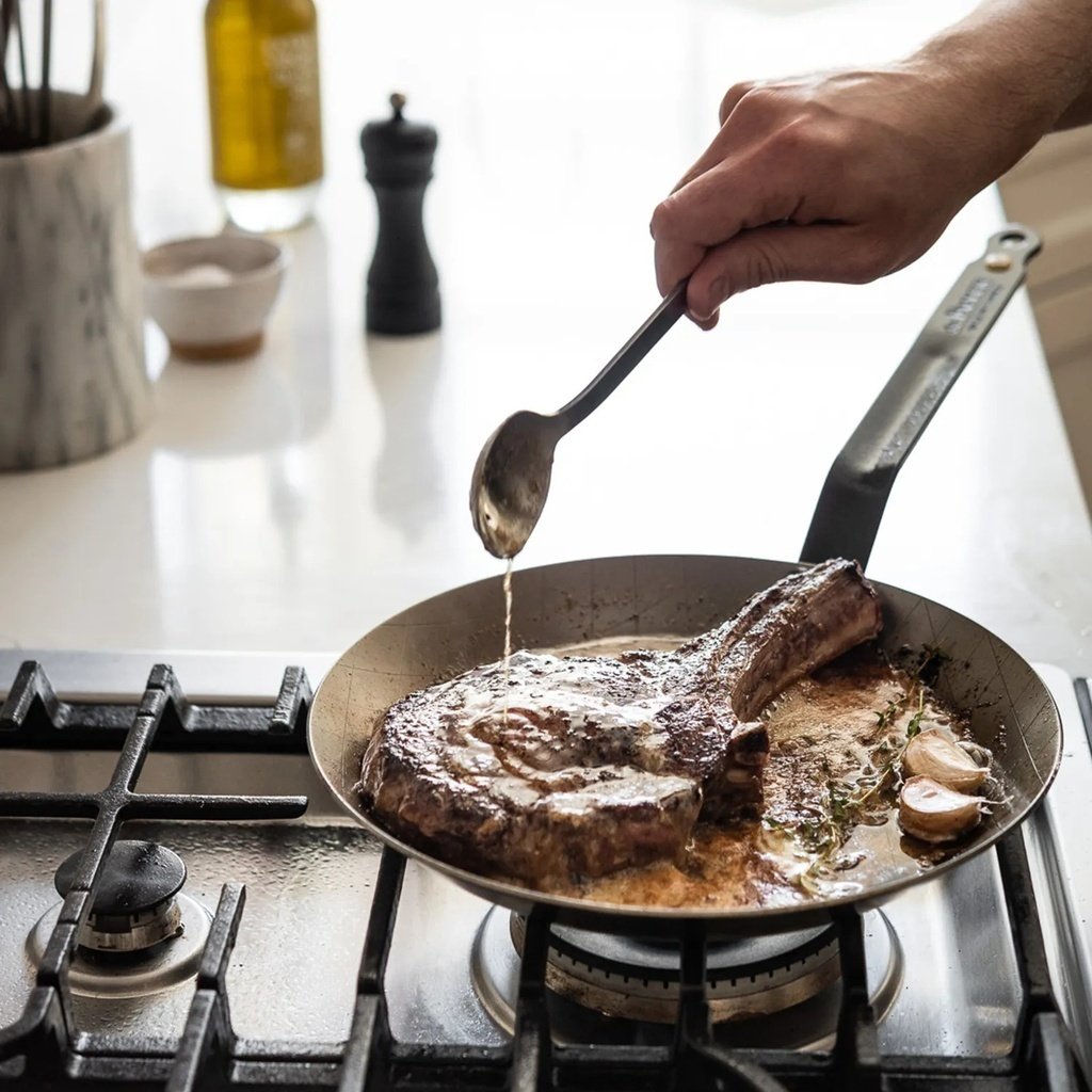 - Stahl ist ein Naturmaterial und die Pfannen werden von Hand gefertigt. Sie können daher geringfügige natürliche ästhetische Unvollkommenheiten aufweisen.