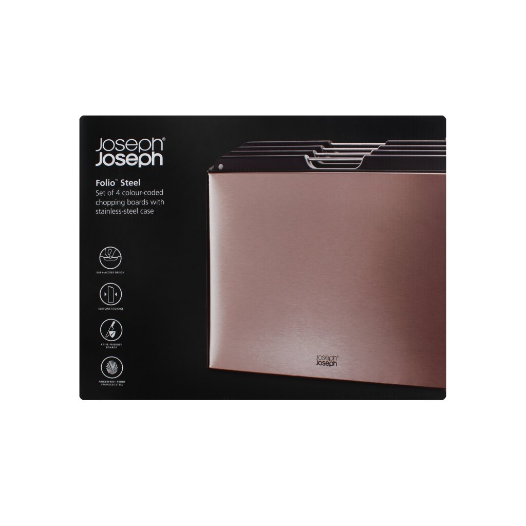 Schneidebrett Set FOLIO STEEL, 4-teilig, mit Ständer, Roségold, Joseph Joseph