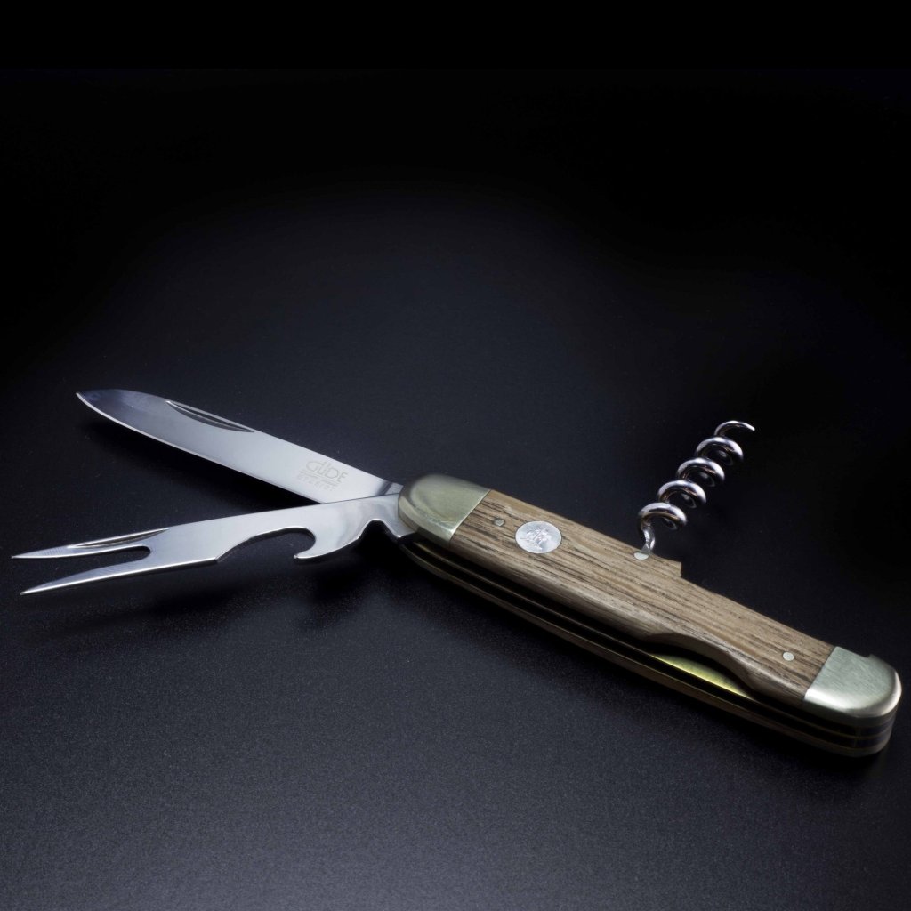 - mit Messer, Korkenzieher und Kronkorkenöffner mit Gabel