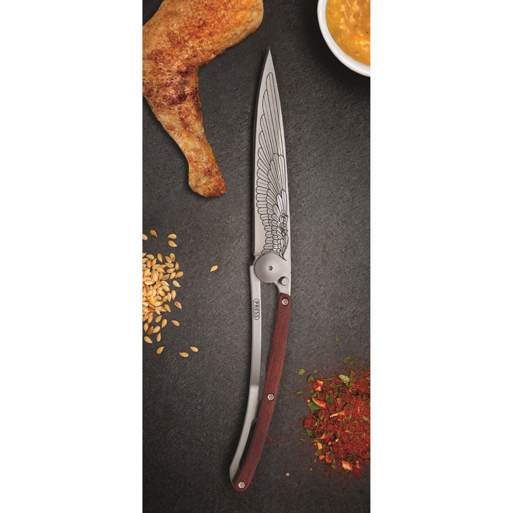 Deejo, das ist die Rückkehr des Taschenmessers mit Stil. Ein ultraleichtes Instrument aus rostfreiem Stahl und mit einer Holzklinge hat diese traditionelle Disziplin zu einem luxuriösen minimalistischen Design, einer mit Lasergravur "tätowierten" Klinge und breiteren Einsatzmöglichkeiten geführt. Es wird nicht nur als funktionelles Accessoire für die Gesellschaft oder den Outdoor-BereichVerwendung finden, sondern auch ein klassisches Steakmesservollständig ersetzen. Kurz gesagt, eine ausgewogene Schaukel, die nicht weit gehen für eine scharfe Klinge und sagt von seinem Besitzer: Er hat Geschmack.