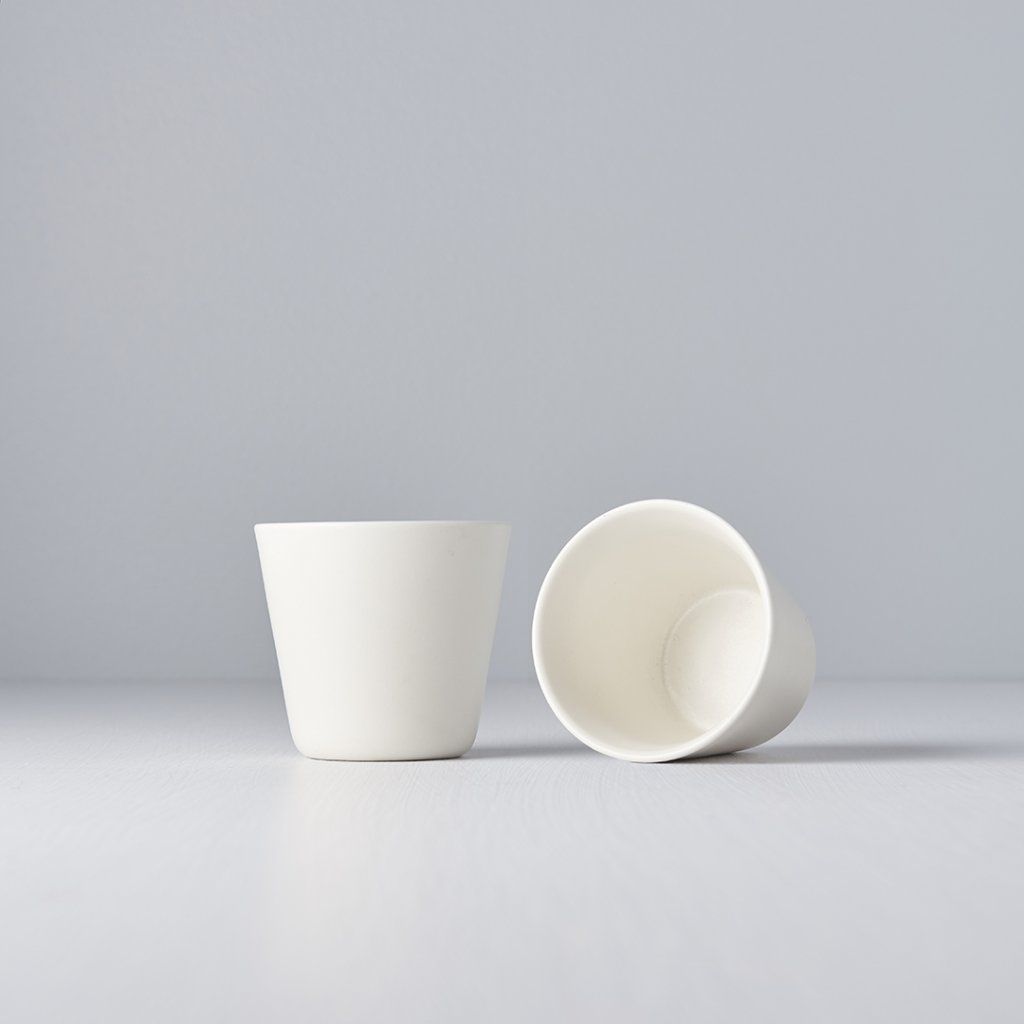 Diekleine Tasse ohne Ohr in mattweiß vom Hersteller MIJ ist handgefertigt aus langlebiger Naturkeramik, die keine schädlichen Verunreinigungen oder Schwermetalle enthält. Es wird von japanischen Meistern hergestellt, deren Tradition bis ins 12. Jahrhundert zurückreicht. Die Farben sind von hoher Qualität, blättern nicht ab und enthalten auch keine schädlichen Stoffe.