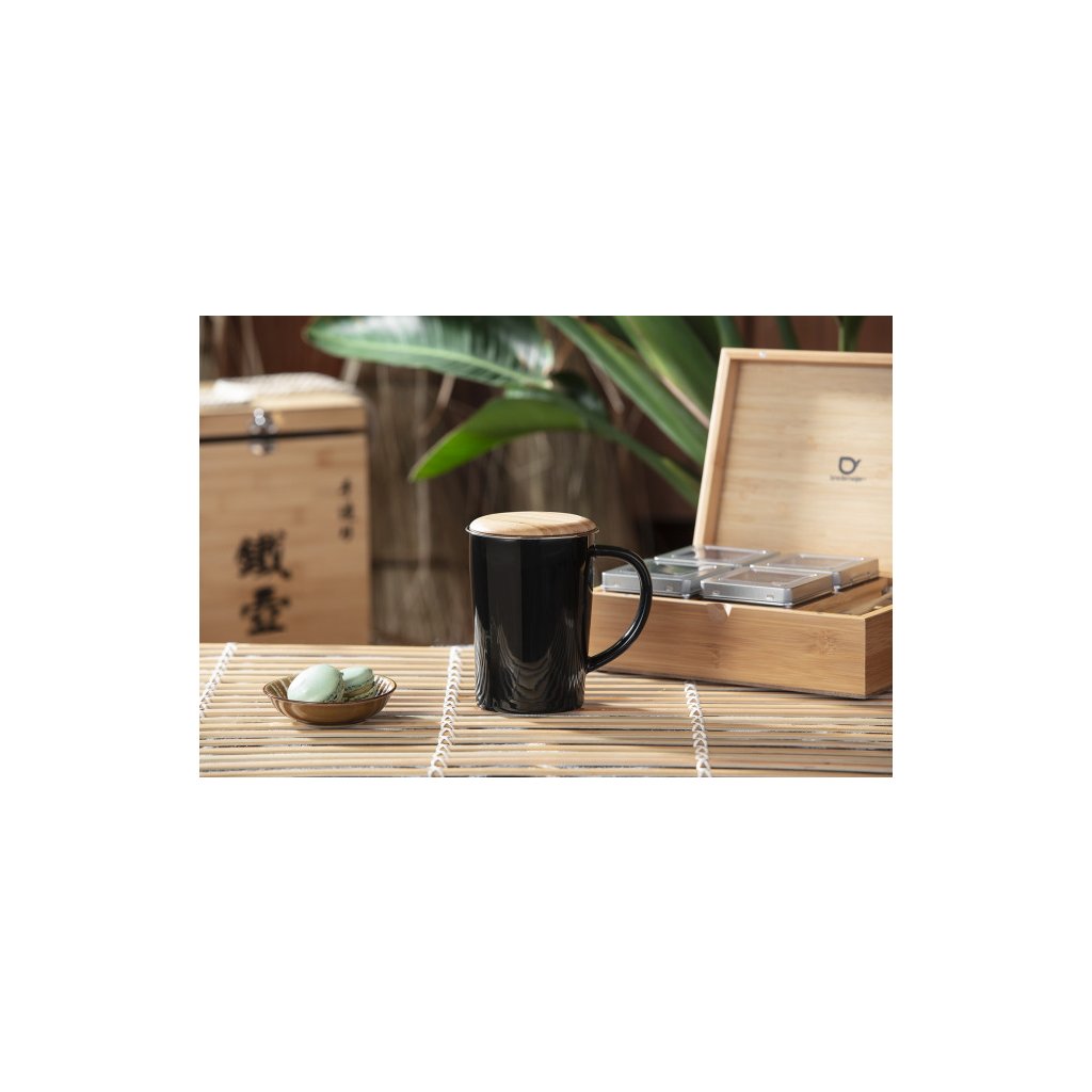 400 ml Porzellan Teetasse mit Bambusdeckel und Edelstahlsieb für losen Tee.