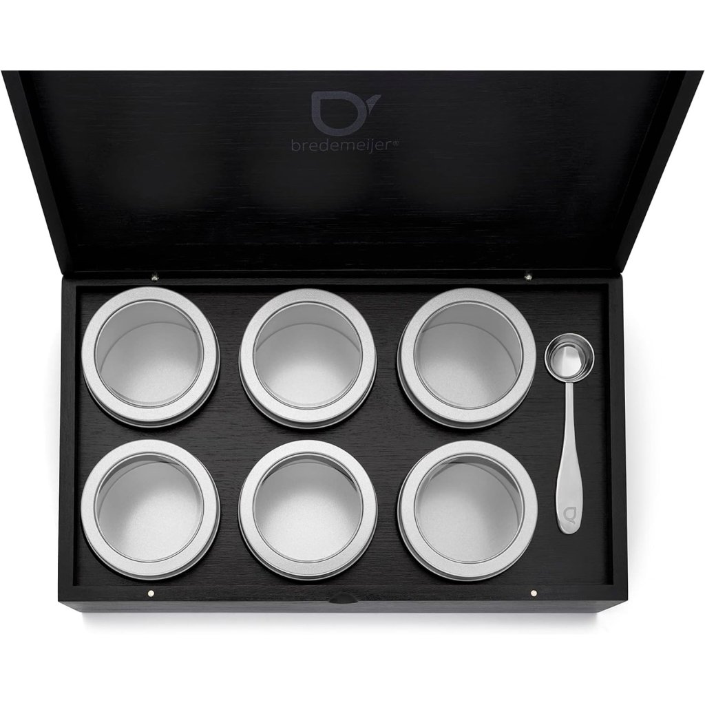 - enthält 6 wiederverschließbare, runde Blechdosen mit Klarsichtfenster für verschiedene Teesorten