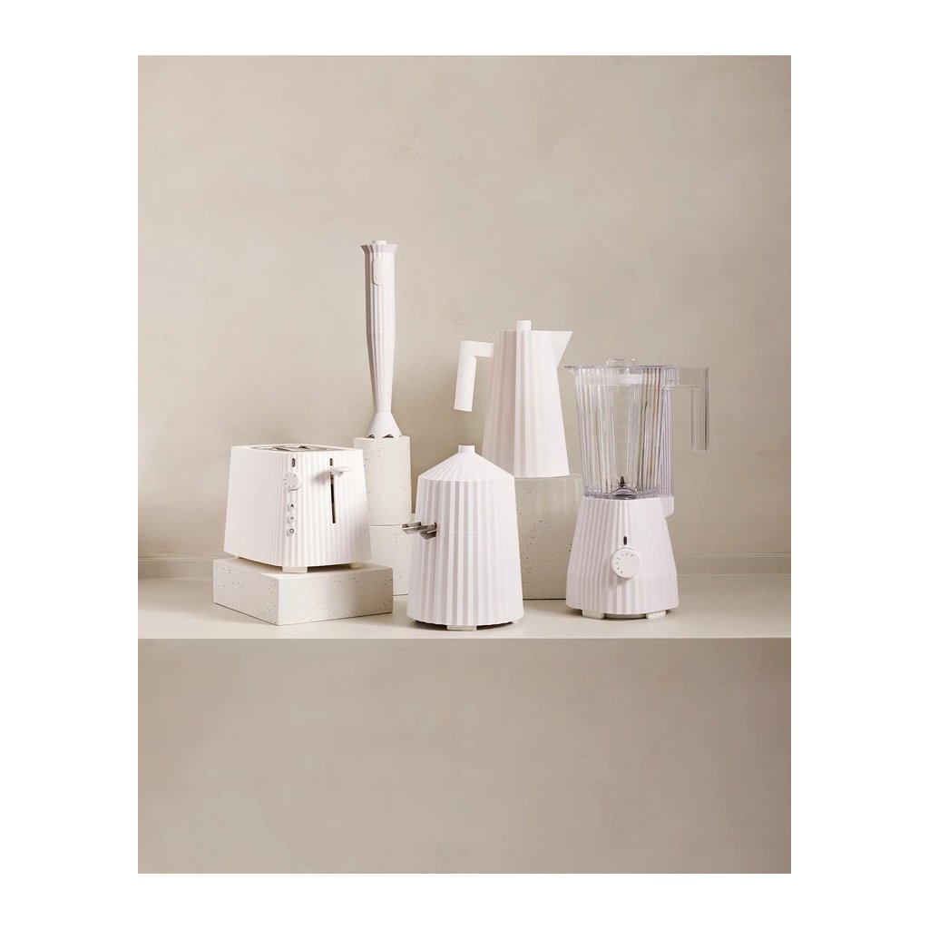 Plissé ist eine aus der Mode bekannte Falttechnik, die sich zeitloser Beliebtheit erfreut. Der Designer Michele De Lucchi nahm sie als Vorlage für seine Produktreihe Plissé von Alessi und schuf eine Kollektion von Küchengeräten, die alles andere als fade ist. Das gefaltete Design lässt die Geräte zu skulpturalen Objekten werden, die sich durch ihre zeitlose Schönheit auszeichnen.