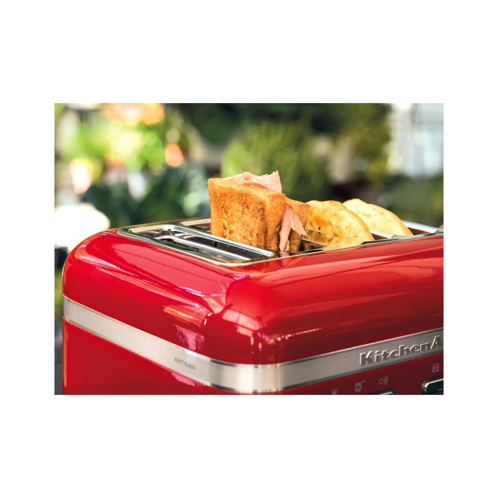 Es heißt, das Leben bestehe aus kleinen Dingen. Wie wäre es also, den Tag mit einem goldenen Toast zu beginnen oder ihn mit einem warmen getoasteten Sandwich zu beenden? Der Artisan-Toaster bietet Ihnen genau dieses Vergnügen. In KitchenAid haben sie ihn neben seinem stilvollen Design mit einer Reihe nützlicher Funktionen ausgestattet. Ob es der eingebaute Sensor ist, der das erhitzte Brot automatisch einlegt und auswirft (und es warm hält, bis Sie es aus dem Toaster nehmen), die sieben Toaststufen oder die praktische Auftaufunktion. Kurzum, ein unschätzbarer Helfer, der sich so gut in Ihre Küche einfügt, dass Sie sich nicht mehr an eine Zeit erinnern können, in der er nicht Teil Ihres Lebens war.
