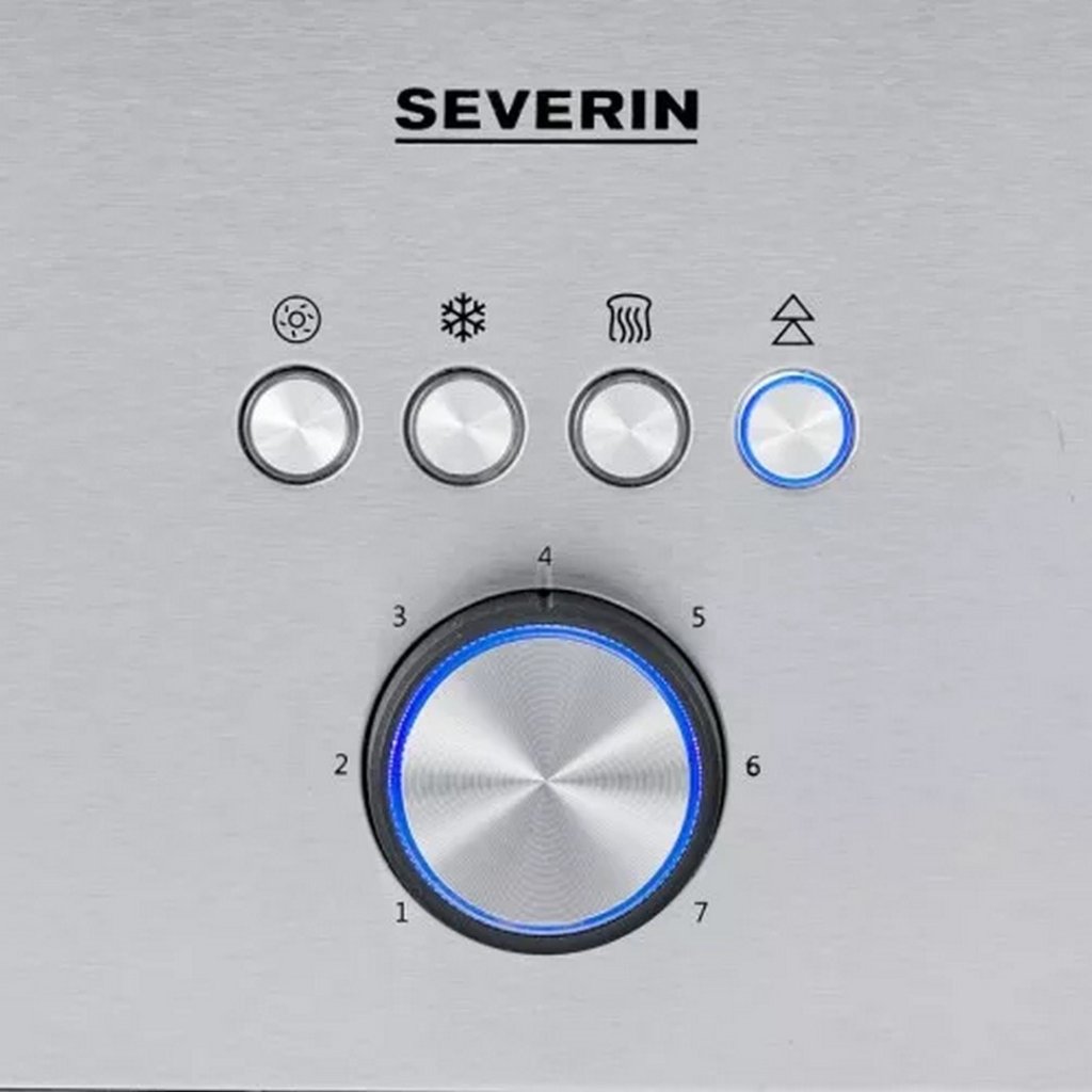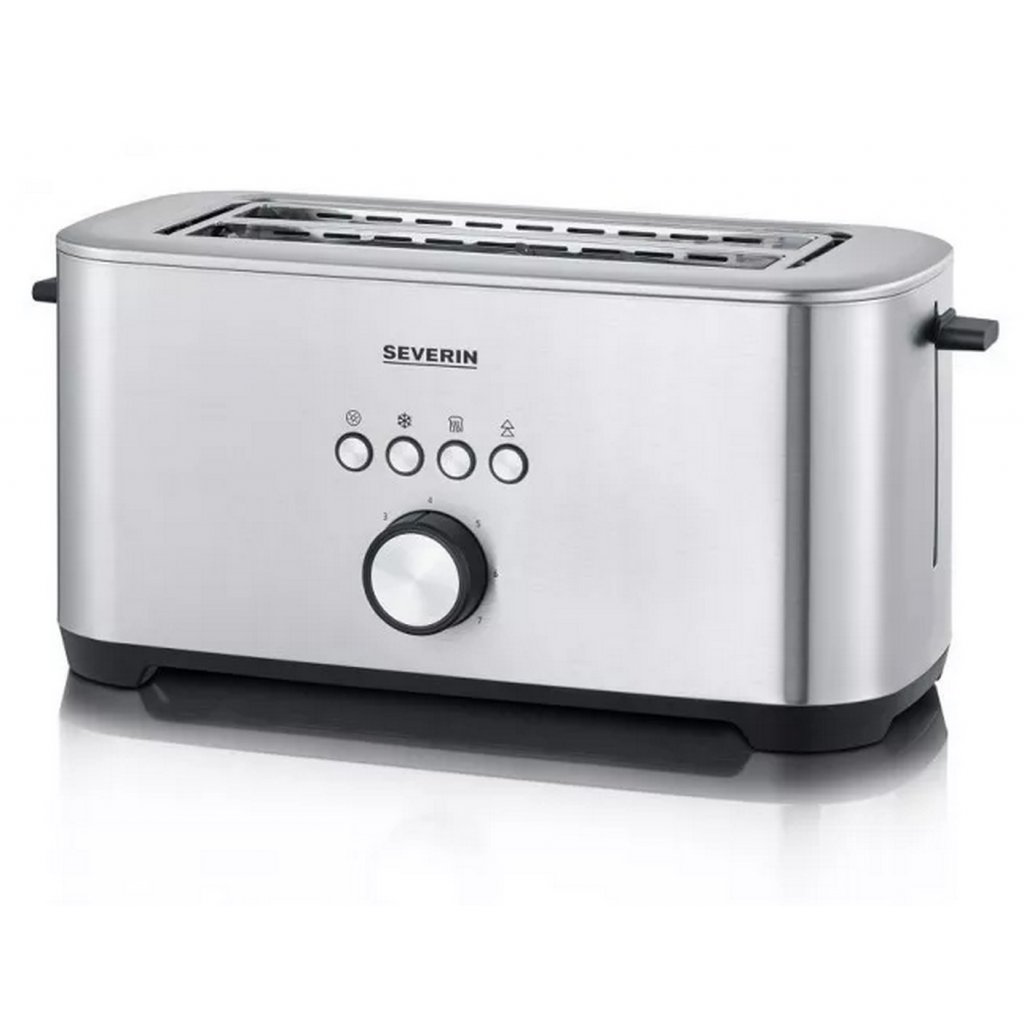 Der Toaster mit 1400 W Leistung und 4 großen Einschüben mit integriertem Toastaufsatz Severin AT 2512 bietet 7 variable Toaststufen, eine automatische Toastzentrierfunktion und eine integrierte Bagel-Funktion für einseitiges Toasten.