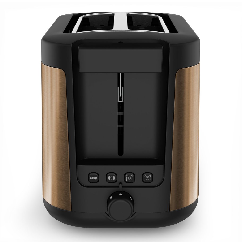 - Das Gehäuse des Toasters ist aus hochwertigem Edelstahl mit einer kupferfarbenen Beschichtung gefertigt, die eine lange Lebensdauer und ein attraktives Aussehen gewährleistet.