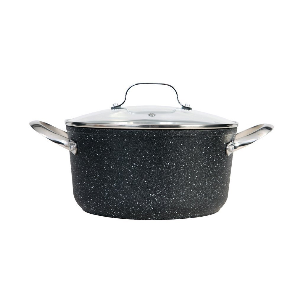 Der Topf mit Antihaftbeschichtung kann jeden Tag verwendet werden, um Ihre Lieblingsgerichte zuzubereiten. Das ist ein Topf, der in keiner Küche fehlen sollte. Die stabilen Griffe sorgen für eine einfache Handhabung des Kochgeschirrs. Es kann in einem Backofen bis zu 260°C (260°F) verwendet werden, einschließlich eines Glasdeckels mit Dampfabzug.