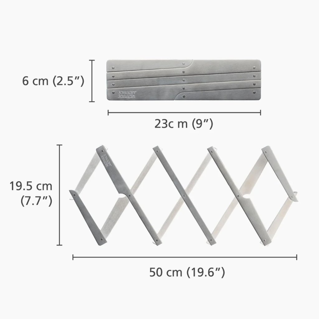 - Topfuntersetzer Joseph Joseph SPACE schützt Arbeitsplatten und Esstische dank eines ausziehbaren Metallmechanismus vor hohen Temperaturen.