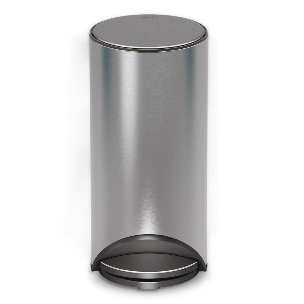 Einige Mülleimer versuchen, unauffällig zu sein. Dieser hier ist so souverän unauffällig, dass man ihn bemerkt. Ein Edelstahlzylinder mit einer sanft geschwungenen Linie wirkt fast wie ein Designobjekt, das zufällig Ihren täglichen Abfall bewältigen soll.