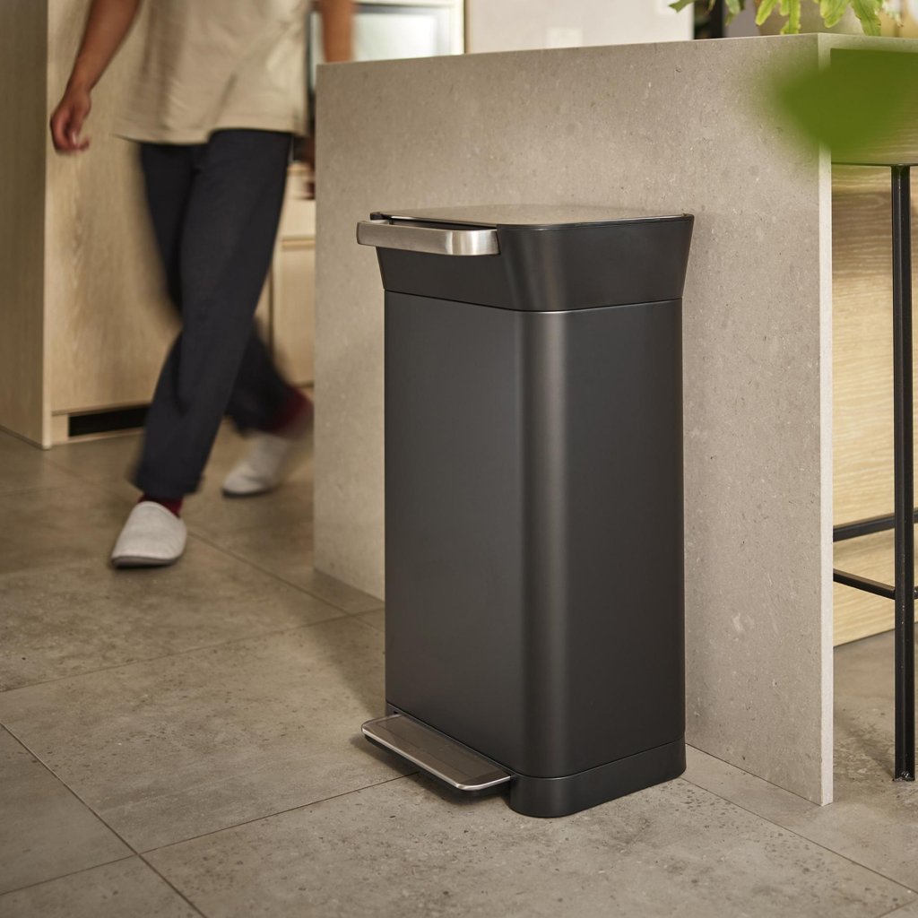 - Der Tretmechanismus ermöglicht ein hygienisches Öffnen des Deckels, ohne dass die Hände bei der Abfallentsorgung benutzt werden müssen.
