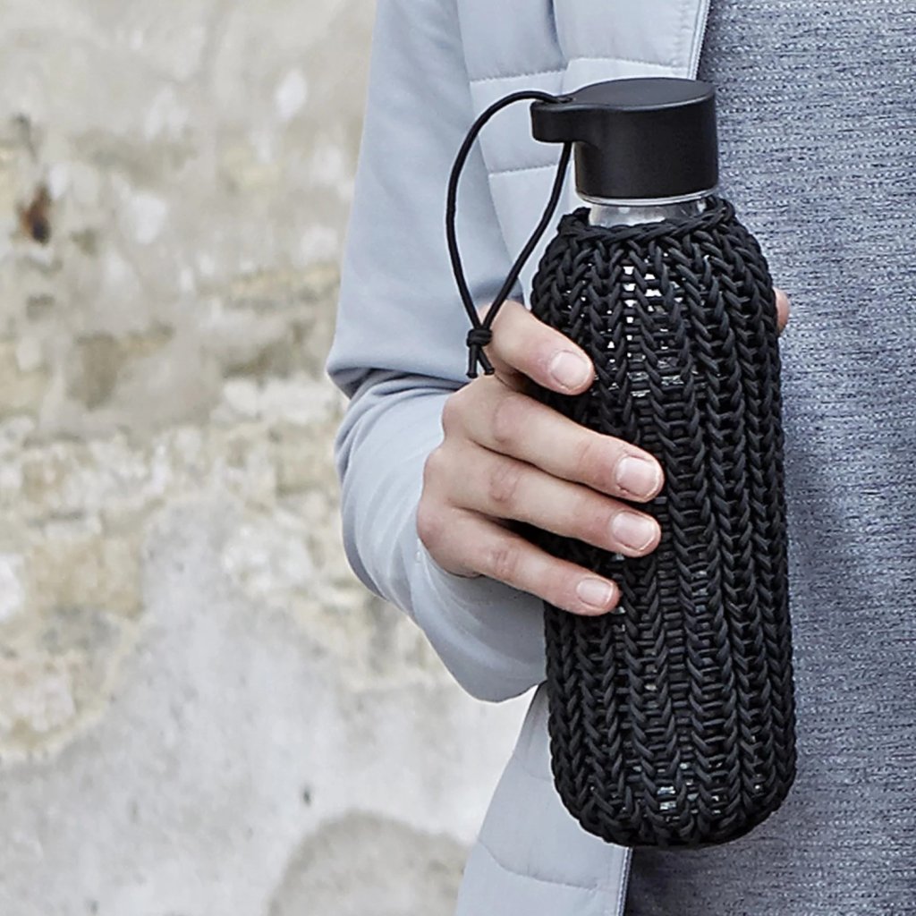 - Der moderne Look wird durch eine stylische Strickhülle ergänzt, die für einen festen Griff sorgt und die Flasche bei Stößen schützt