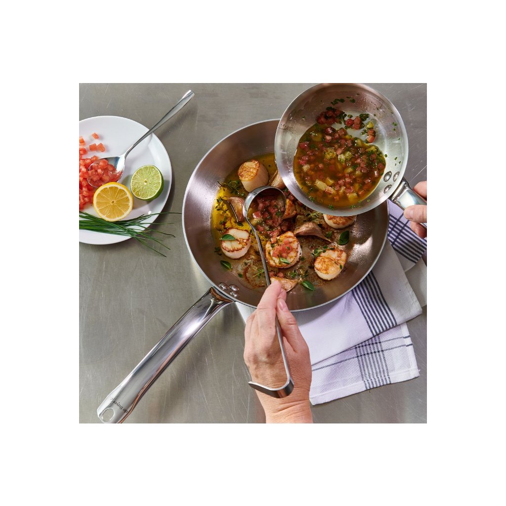 Die Universalpfanne aus der Alchimy-Kollektion des Herstellers de Buyer erfüllt die Anforderungen von Profi- und Hobbyköchen für das tägliche Kochen. Die gleichmäßige Temperaturverteilung garantiert der dreischichtige Aufbau des Kochgeschirrkörpers und bietet vollständige Kontrolle auch über die komplexesten Kochvorgänge. Alchimy Kochgeschirr ist für gesundes Kochen geeignet. Er ist langlebig, leicht zu reinigen und sein Design hilft den Energieverbrauch zu reduzieren.